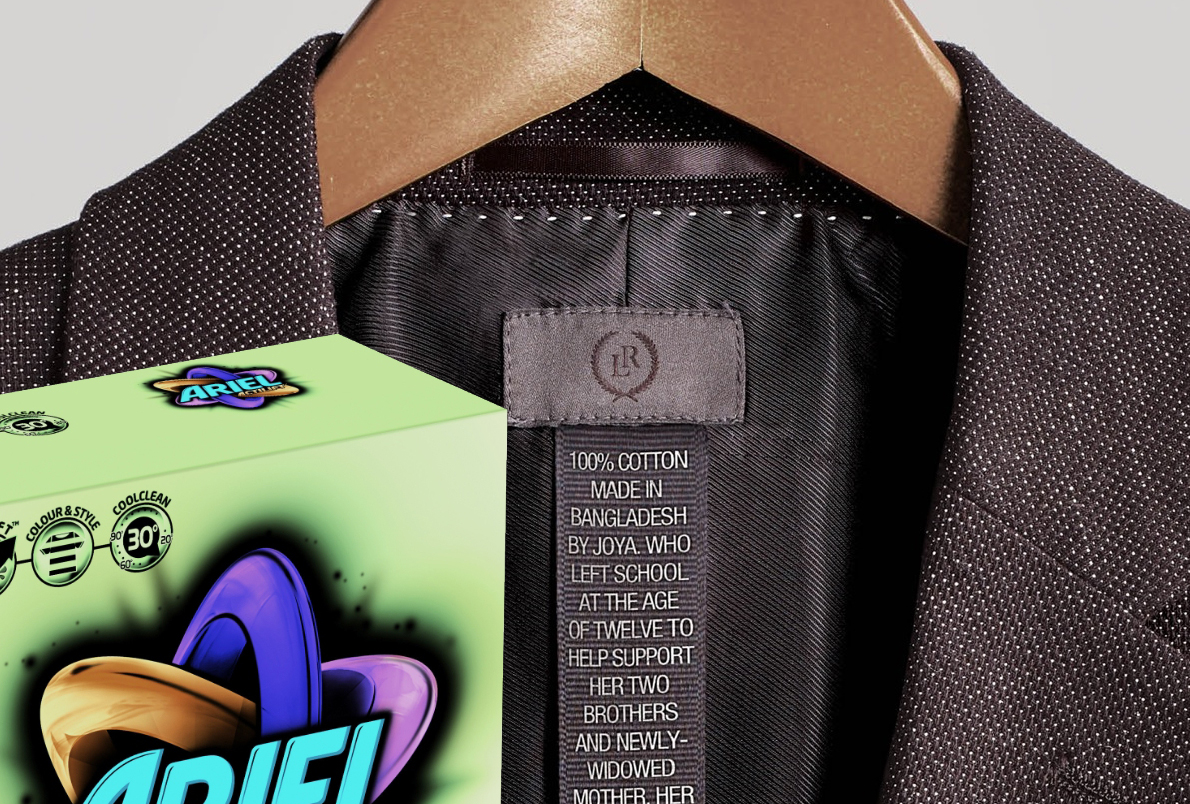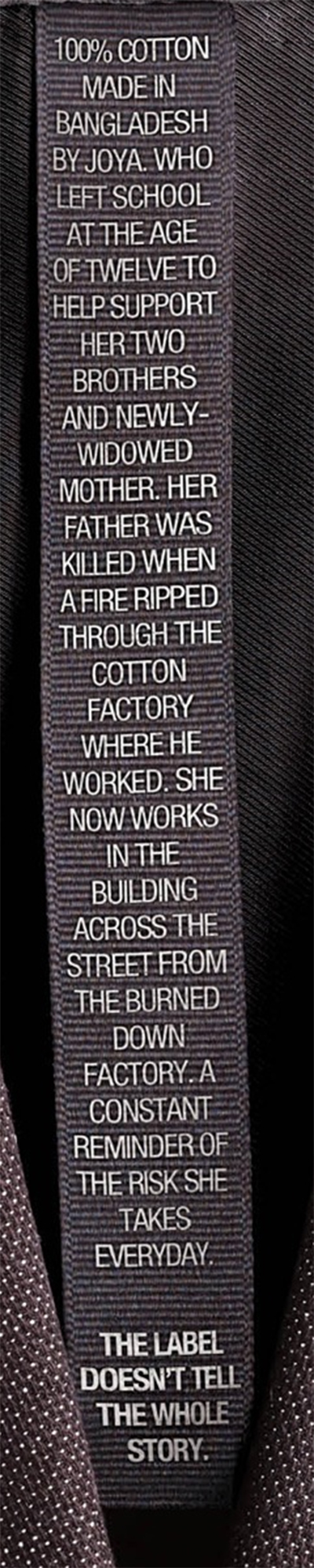 I Canada har Reklamebyrået Rethink med Art Director Leia Rogers laget denne kampanjen. Ta deg tid til å lese merkelappen så ser du at plagget inneholder en historie, i tillegg til 100 % ull. Hill, hill. http://fairtrade.ca/ http://rethinkcanada.com/us/