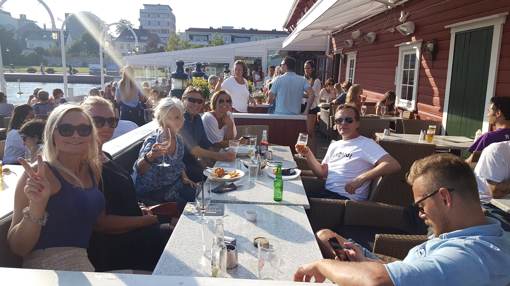Kristiansand er fin. Den er fin når den går på stille dorgefart, den er fin når det er full guffe.. Den var vakker i går på en solvarm julidag. Og mens vår vakre by fyltes opp med yre 20 åringer fra de beste vestkantene gikk Maya og meg på Sjøhuset. Og mens bystranda er frihandelssone for palmeolje og palmebrus under Palmesus nøt vi en vakker aften i havkanten. Kent og Siri inviterte oss til utepils og middag på Sjøhusets brygge. Det var helt topp. Det var altfor lenge siden merket jeg fort, for dette var en god kveld. Sola koste seg, servitørene koste seg, Maya koste seg og Tomm koste seg. Og mens Palmesus’ vakre unge kvinner i sine trange shorts slet med å få kontakt med de veltrente vakre unge mennene som heller ville se på seg selv enn på dem, ble vi kjent med nye folk. Venner av venner kom til og kvelden ble lang, men kort. Og mens DJ-ene på Palmesus tapte dunke-kampen mot en to-hesters marnamotor, vant kvelden våre hjerter. Takk for invitasjonen.