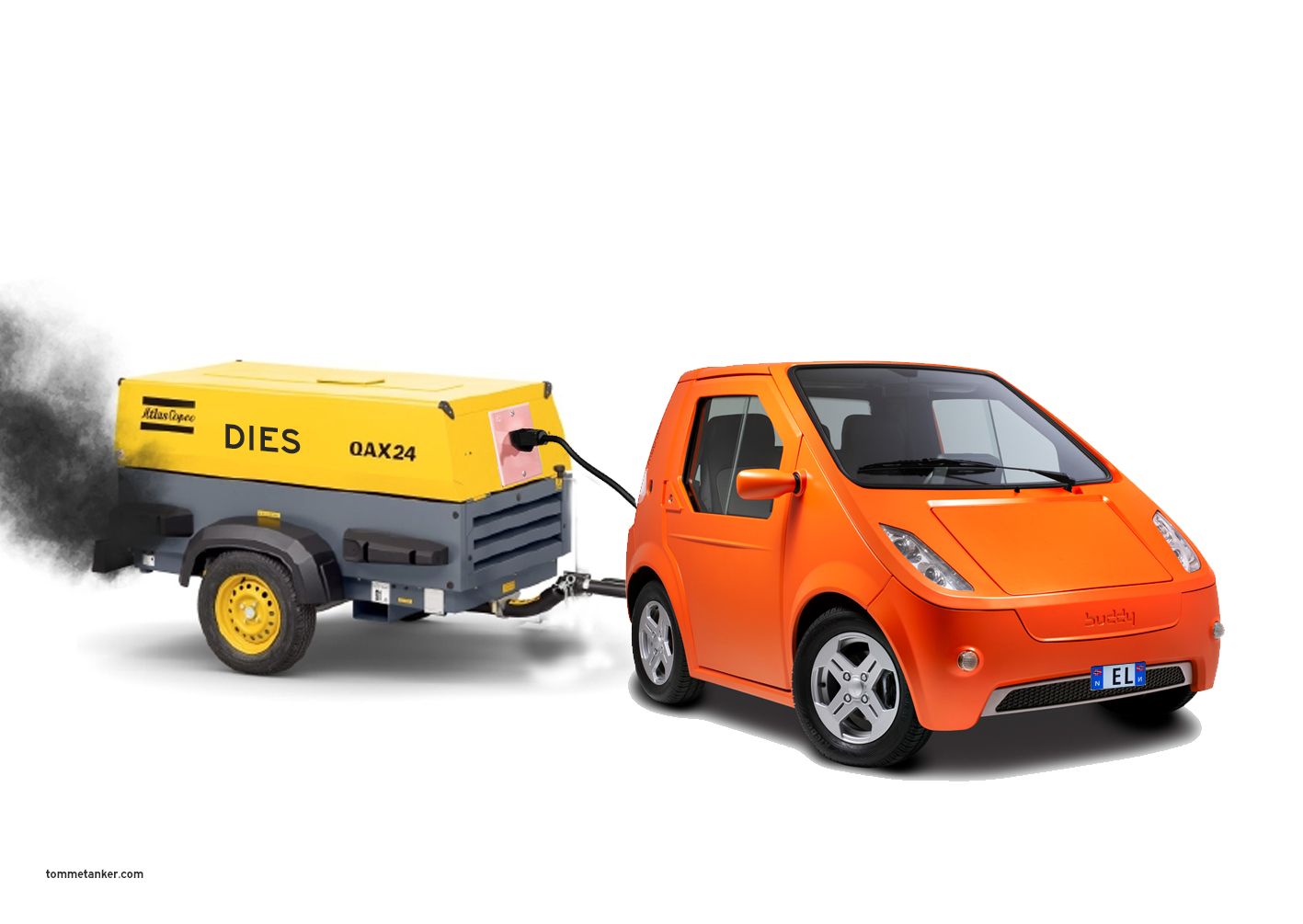 Vi har ventet på det. Vi som ikke har en bank-konto klar for Tesla. EL- bil frister, men jeg kjører av og til langt og jeg trekker oftere tilhenger. Og da er EL-bil dessverre ikke førstevalget. De kan hverken kjøre langt, eller trekke tung henger. Ikke før dette kom på banen. AtlasCopo EL-bil ADD-ON. En ADD-ON som i realiteten gjør at du kan kjøre så langt du vil. Om du har iUP, Buddy, Nissan Leaf eller styggen til BMW så kan du nå slappe av. Alt du trenger er et tilhengerfeste. AtlasCopo har produsert dette produktet lenge for andre markeder. Men nå er det altså klart for din lille EL-BIl. Med god samvittighet kan du nå kjøre grønt fra Kirkenes til Mandal, nesten uten stopp.