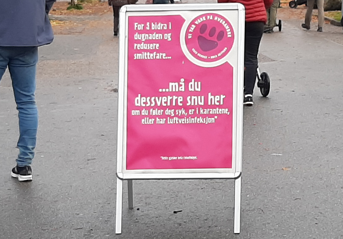 . . . .må du dessverre snu her om du føler deg syk, er i karantene eller har luftveisinfeksjon.”