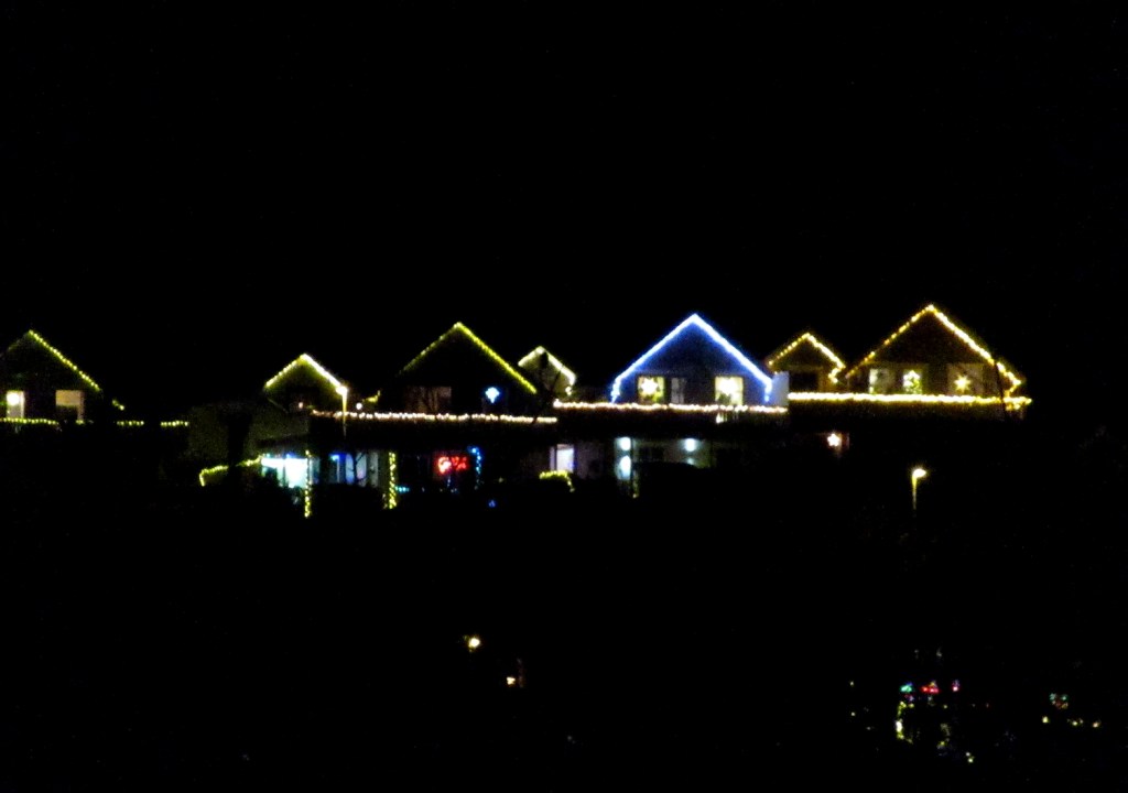 Heldigvis er de fleste hus koselige med litt lys. Behersket lys. Og av og til smiler jeg og tenker at her er det noen med smaken i behold. Noen som tenker litt helhet og design. I begynnelsen av Hånes I Kristiansand har et helt lite nabolag skapt noe fint. Fra Strømsheia sent i går kveld så jeg de vakre lysene på Bamåsen. De som strekker seg fra hus til hus og lager et fint lite mønster. En koselig lysrekke. Lyslenker burde vært kvotebelagt med mindre du kan vise til slike ting de gjør i Bamåsen. De har klart det der. Det er bare flott. Takk for julestemninga.