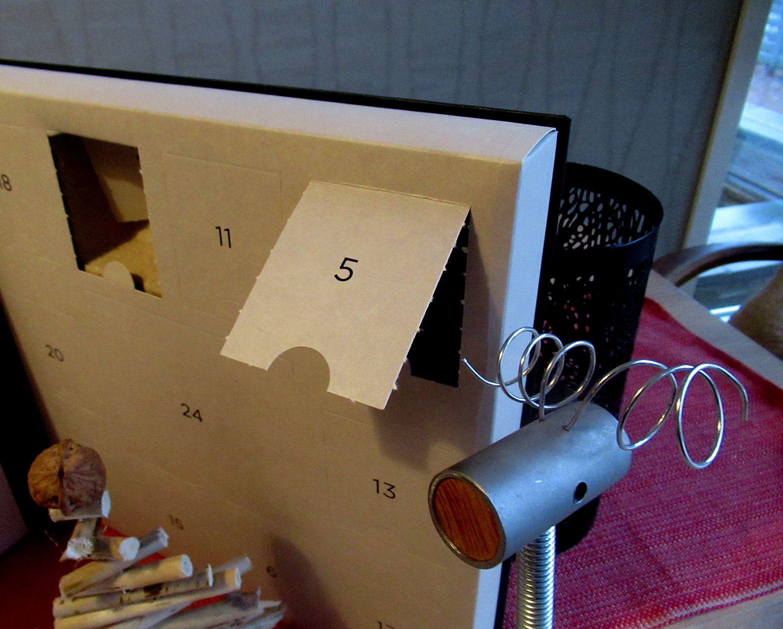 Og her kommer lykkelig glemsomhet inn. For i det jeg åpner opp luke 5 myser jeg over til luke 4. Satan! Jeg glemte den i går. Oh, lykke. Dobbel dose lakris i dag.