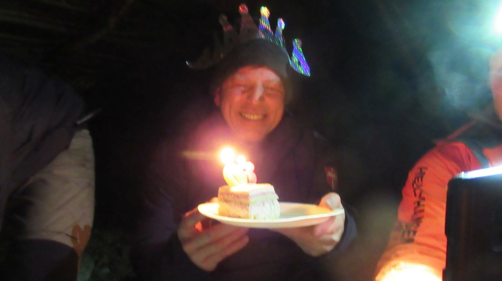 Det ble en overraskende fin fest i skogen til ære for en god venn som fylte år. Overraskende i alle fall på han. I total uvisshet ble han lurt av hans ellers så ærlige og troverdige datter til å kjøre henne til ei venninne. Venninna var selvfølgelig ikke der. Der var vi. Gode venner gjennom mange år. En sang for en rødmende hedersgjest var på sin plass. Datteren ikledde han varmt tøy og til skogs bar det. En mesterlig innføring i frisbee-golf av entusiast Paul hjalp dessverre ingenting. Underlig klein kasting til høyre og venstre ble resultat av å prøve å få disken rett frem. Lavmålskasting så det holdt. Vi kastet oss inn til mørket la seg over oss. Da gikk vi lenger inn i skogen hvor bålet og historiene ventet. Det ble mye svett og ganske så flau mimring. Av en eller annen idiotisk grunn hadde festdeltaker Bjørn tatt vare på brev vi skrev til hverandre mens hormoner var på avveie. Mens kroppen var 18 -19 -20 og hjernen var 14. Disse leste han opp i plenum. Lurte litt på å hente hagla. . .