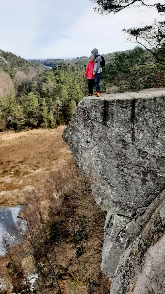 Den Lille Prekestolen var et passe turmål denne dagen. 5-6 kilometer fram og tilbake fra Auglandstjønn Barnehage.