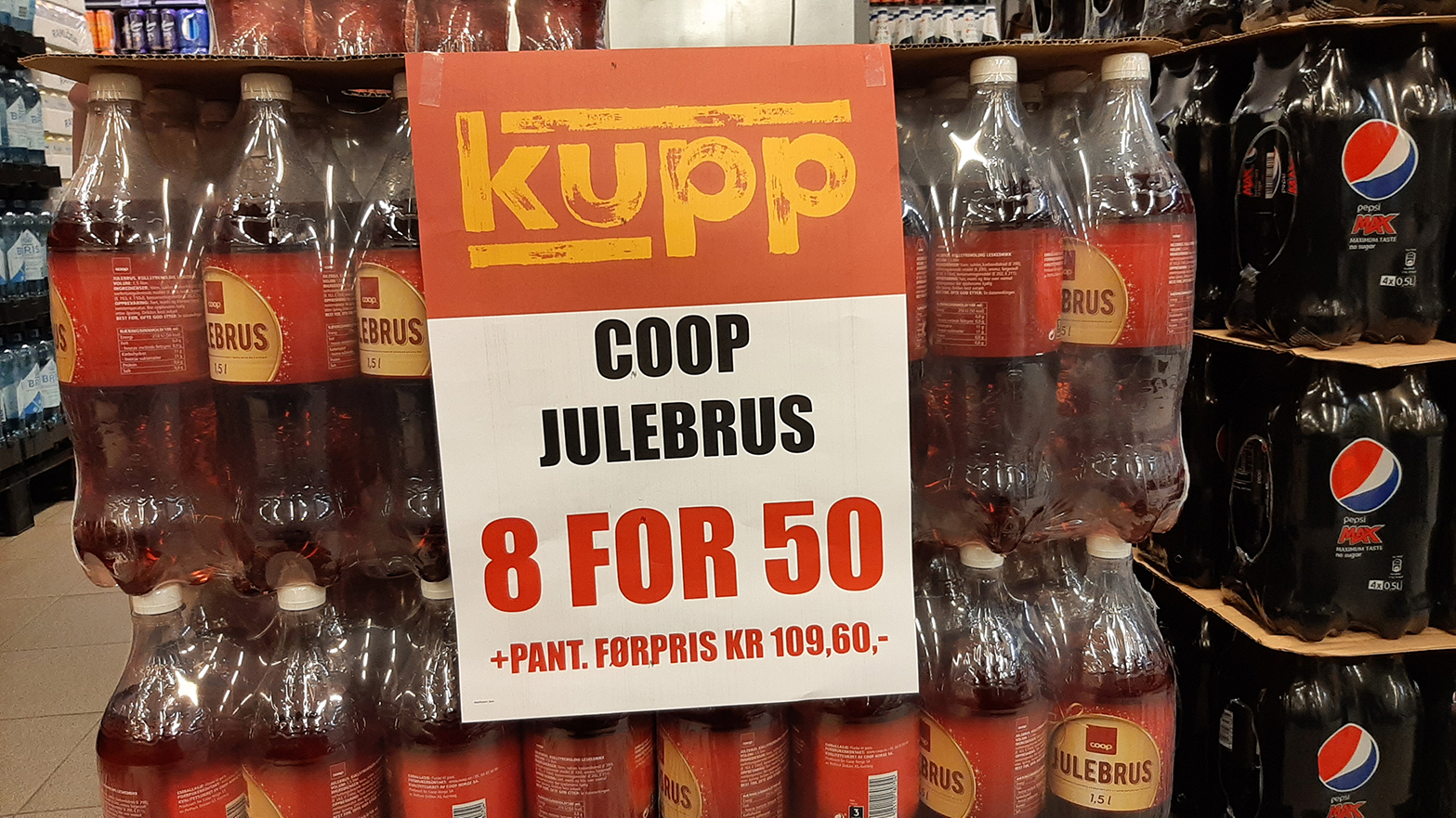 Varer jula til påske? Enten er det slik eller så vil COOP på Dvergsnes være først ute med årets julebrus. I tidligste laget synes noen, mens andre tiljubler dette og synes jula skal vare hele året med åpning av pakker den 24. i hver måned. En annen teori er at COOP sin julebrus kanskje ikke når helt opp i de store julebrustestene og de sitter igjen med et ganske så stort lager. Kanskje de skulle lagt til en S og en K foran på etiketten for å få opp salget, eller legge til BILH først og selge hele lageret til Biltema. Det er mange tanker som går gjennom hodet på en stakkar inne på matbutikken.