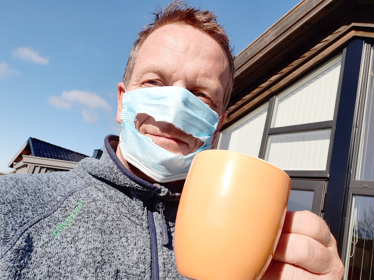 Klokken 07.21 stod jeg langsomt opp. Aktivitet går langsomt i disse fjesmaskedager. Jeg stod langsomt opp og lagde en langsom frokost til meg selv. Solen som langsomt flommet inn i stua var av den vakre seine sorten og utsiktskaffe smaker bedre enn vanlig kaffe. Jeg tok på meg mitt frokostmunnbind og nippet til kaffen. Vet aldri hvor smitten er.