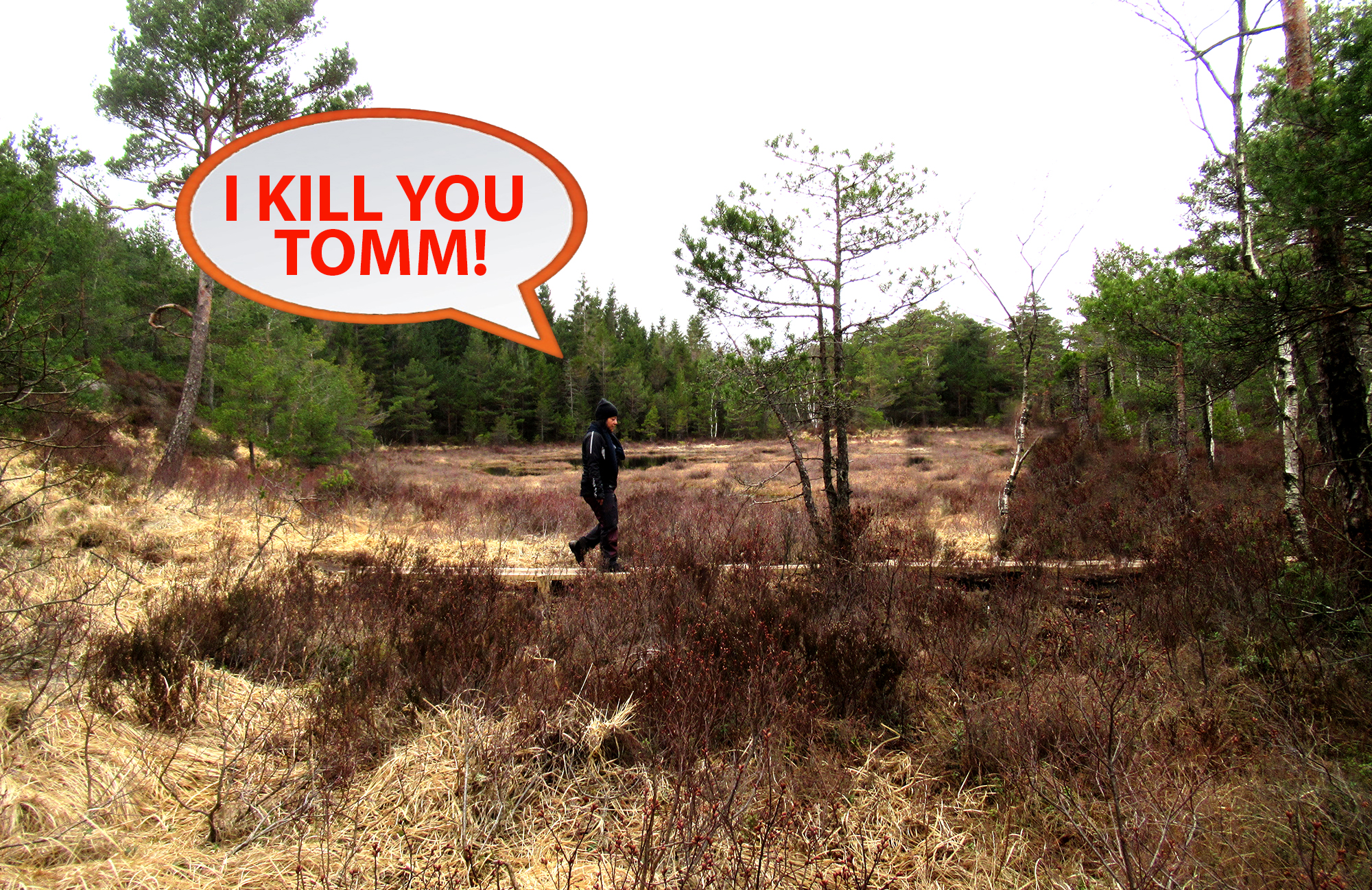 “Er det nå jeg skal dø?”, tenker jeg, på vei rundt Svingervannet?. Hun gjennomførte det ikke. Heldigvis for meg kommer dette utsagnet først etter at hun kjenner på utmattelsens seige slør. Og heldigvis før jeg selv blir utmattet. Denne gangen kom det først etter ca.4,5 kilometer, og det er ny rekord. Hun har sagt; I kill you Tomm, til meg i ulike skoger rundt om kring Kristiansand. Men tidspunktet for utsagnet kommer lengre og lengre inn i turen. Det viser framskritt og bygging av både kondis og muskler.