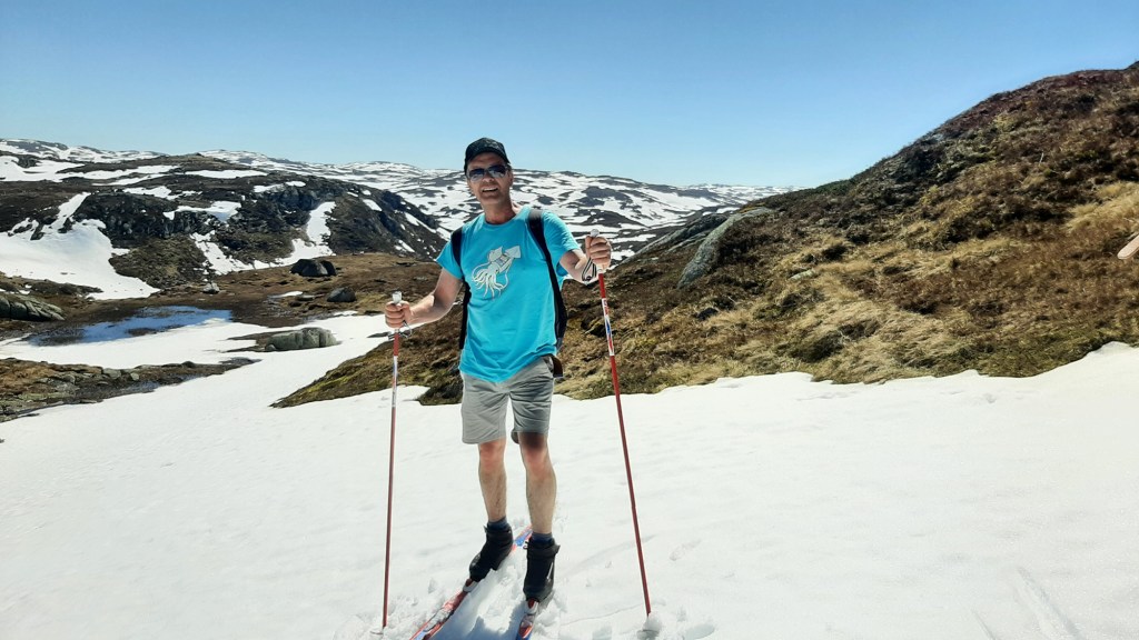 1050 meter over havet. Vindstyrke; 0. Temperatur; 25. Terningkast; 10. Suleskardveien er kanskje Sør-Norges fineste fjellvei. Den er vinterstengt og sommeråpen. Sånn ca i midten av mai er mer eller mindre snø fjernet fra asfalten som snirkler seg over fjellet. 1050 meter over havet på det meste. Det er en attraksjon når den åpnes. Snøen ligger fortsatt langs veien mens bjørka grønnes nede i dalen. I går, søndag, skrudde naturen opp termostaten og slo av vindmaskinen. Min gode venn Arild hentet meg kl. 0800 og vi sikta oss inn mot en fin dag over Suleskardveien. Fra Storstraumen, slusene i Byglandsfjord, tok vi inn en sidevei og gjorde som folk i Setesdal. Vi fulgte den smale vei. Noen hadde fortalt meg at dette var veien for meditasjon. Bakveien til Rysstad. Det stemte. Har du tid så ta den ekstra turen. Og har du ikke tid så ta deg. Det var verdt det. Veldig fin omtur.
