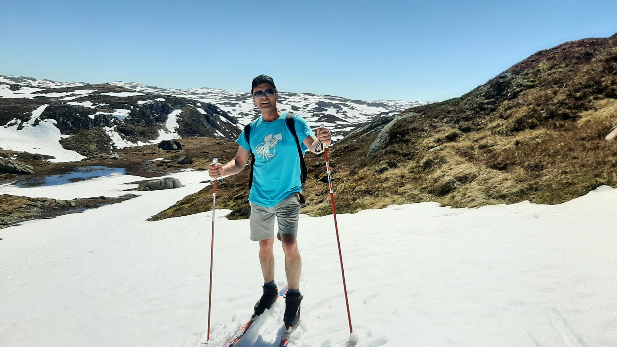 Det så ut som alle menn over 60 hadde kjøpt seg motorsykkel og valgt akkurat denne gloheite dagen til å ikle seg tykke skinnklær og vinterpolstra helhjelm for å ta turen over fjellet. De sier det er slik en frihetsfølelse å kjøre en slik motorsykkel. Jeg stod der, smilende, iført shorts og ski og vinket til alle de frihetssøkende motorsyklistene. Jeg tenkte jeg kanskje følte mer på frihetsfølelsen her jeg stod, enn dem.