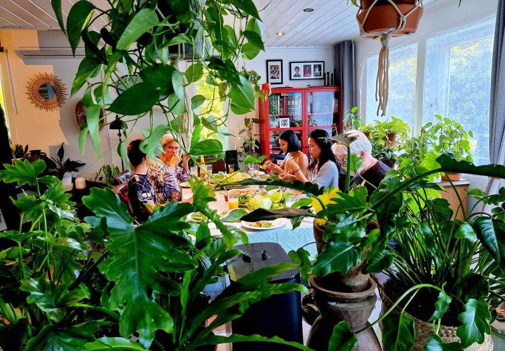 Makrellen servers annerledes nå. Svigerdatter dekker bordet med et ukjent antall typer grønplanter som alle kan spises. “Ta et blad fra den planten der ute. Fyll den med makrell, nudler, sitrongress, rabarbra, lime, hvitløk, koriander, mynte og 5-6 ting til og rull det sammen.” sier hun. Og vi adlyder. Og sammen med en saus som er chillimoderert ned til norske ganer er måltidet topp. Smaken er himmelsk. Makrell har aldri smakt så godt.