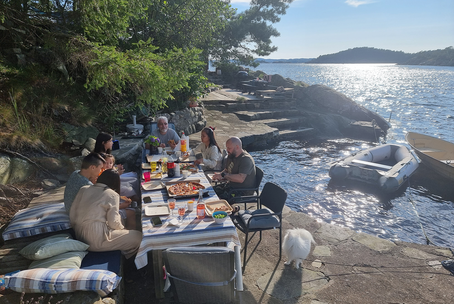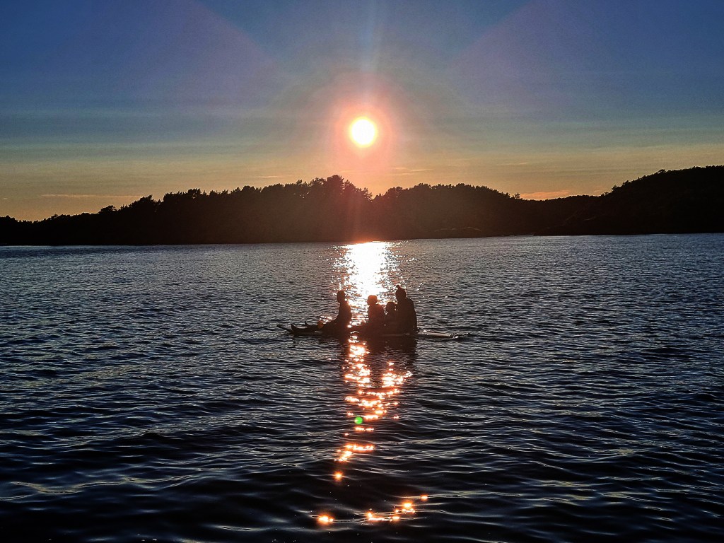 Selv om jeg over tid har et selvpålagt isolasjonslag rundt vomma stod jeg over det våte element. Noen måtte kjøre båten mens andre satt i ringen bak. Det ble en fin kveld for en fin gutt.