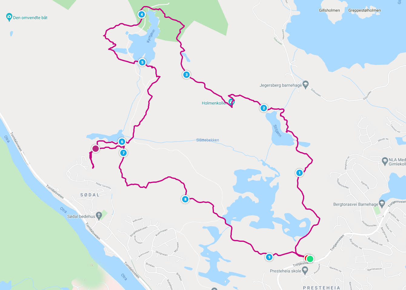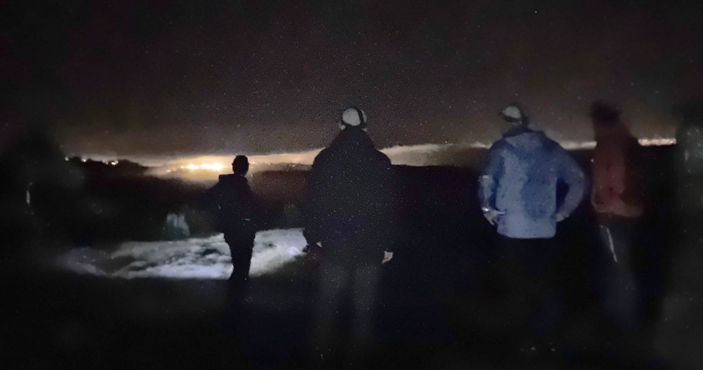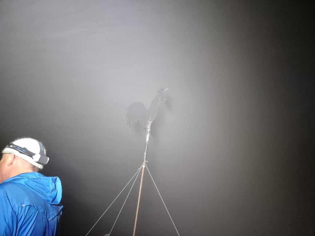 Så havnet jeg i skogen igjen. 5 raske menn gikk ni raske kilometer. Og om ikke mørket gjør at vi ikke ser noe . . . .. Tåka kom. Det hjalp ikke særlig på praten. Ble mye tåkeprat den siste biten. 14 000 lumen litt over pupillhøyde gjør at vi kunne ta tåka i nærsyn. Vanligvis står vi og ser utover heiene og later som vi ser at det er fint. Det gjorde vi ikke på onsdag. Da kunne vi nesten ikke se fjellet vi stod på. Vi forsøkte oss på Holmenkollen, Ridestien, Vaffelbua, Hanehei og Kalkheia. Fint var det – sa vi, men mente det ikke for vi hadde ikke peiling. Men det å gå slik i fotsporene til Blairwitch uten å frykte mørket er fint. Av og til høres vi ut som en flokk kalkuner i vårstemning. Av og til går vi stille som den natten vi er ute i.