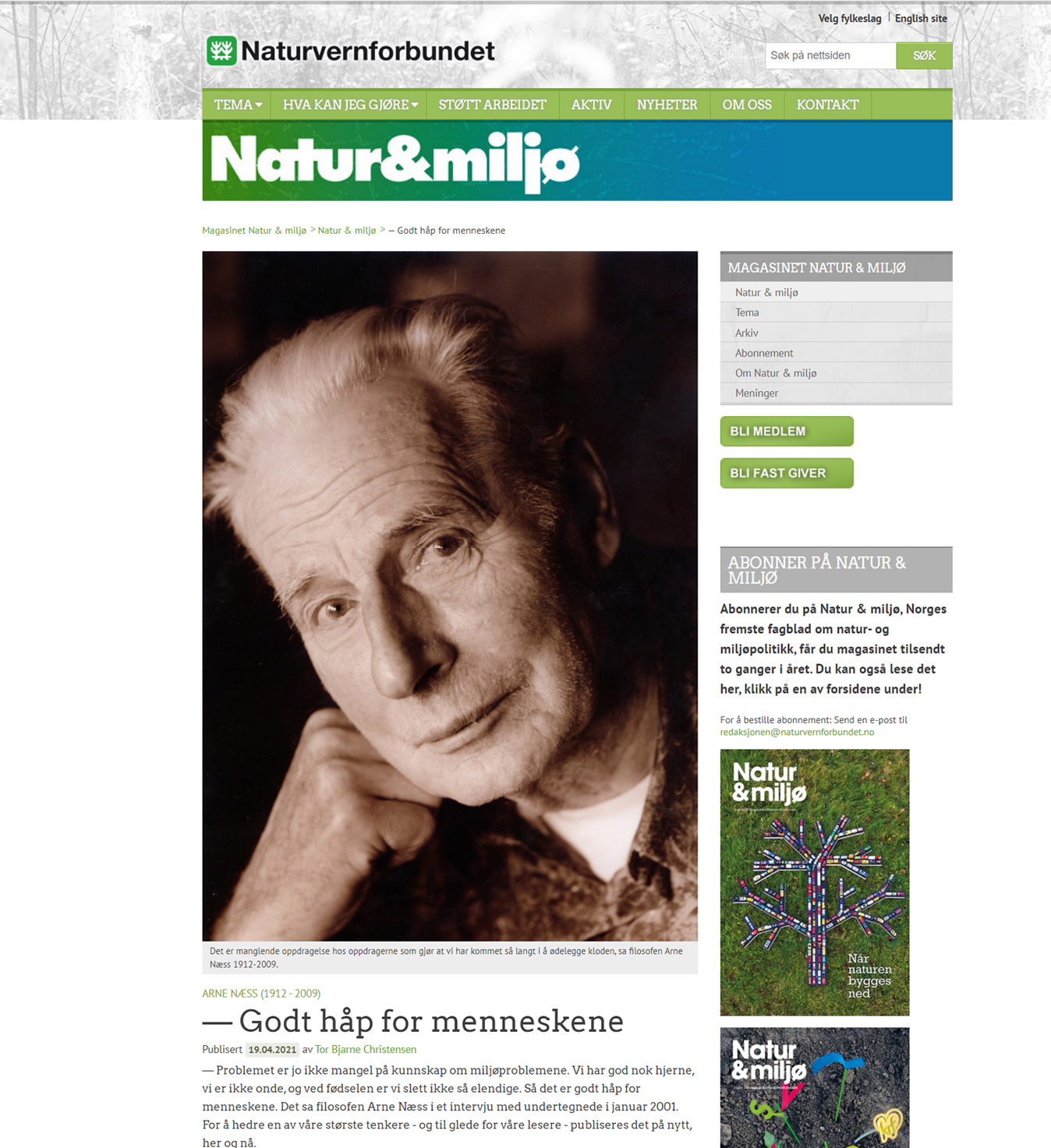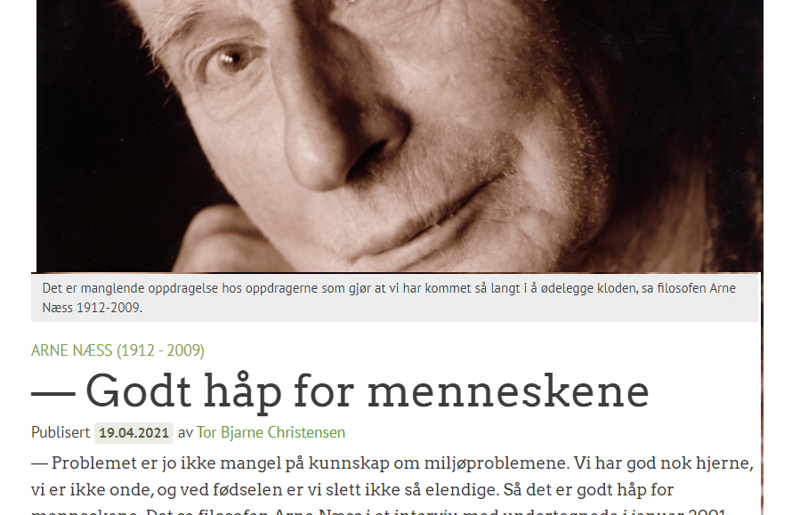 “Vi er smarte nok men bruker ikke fornuften. Et rikt liv har ingen ting med velstand å gjøre. Vi må bøye oss ned til jorden litt oftere. ” Kloke ord fra Arne Næss. Han selv finnes ikke lenger, men hans tanker og tekster gjør det. En filosof med stor tro på menneskers iboende godhet og kjent for sitt forhold til naturen. Intervjuet her er absolutt verdt å lese. Det er noen år gammelt men les det nøye og bøy deg ned.