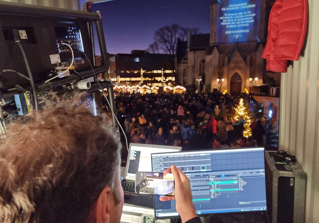 I en hverdag hvor antall doser har blitt et statussymbol hiver vi oss på med doser av et litt annet slag. Doser av Jul. Noe godt og varmt for hjerte og sjel. Og det er med en sørlendings stille jubel at jeg hver kveld sitter i containeren sammen med kollega Yalcin og ser alle de som stiller seg opp foran Domkirken i Kristiansand. Med forventning om noe fint. Med forventning om en god dose jul i kroppen. Litt høytidelig julestemning plassert inn i uvirkeligheten. Mange har kommet for både sin tredje og fjerde dose. For noen er det den første. Barn med store øyne sitter på skuldrene til fedre som smiler. Kjærestepar holder rundt hverandre. Mange velger å se showet gjennom mobiltelefonen. Det er vakre minutter og lyden og bildene som vises skaper ro og stillhet i hjertet.