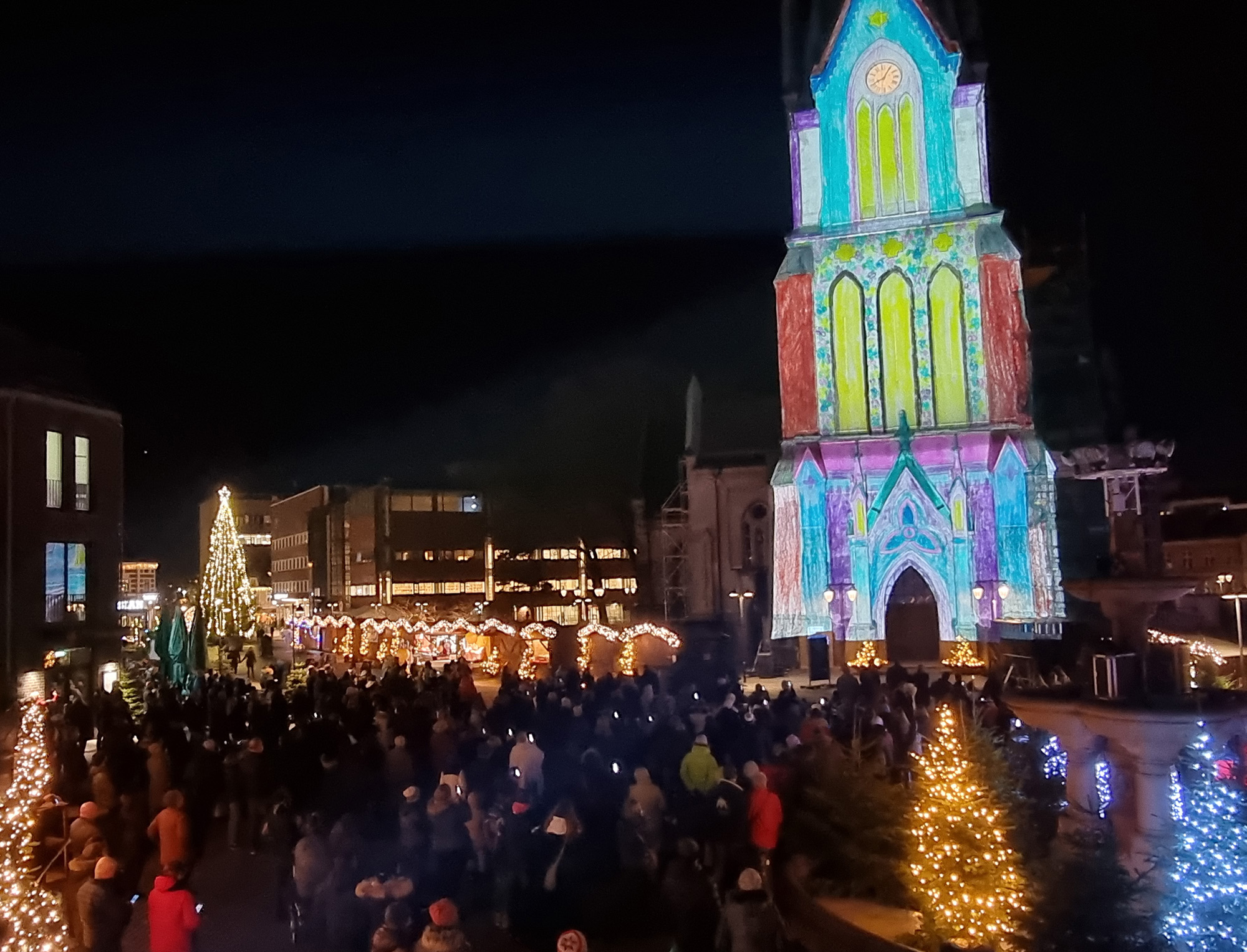 I en hverdag hvor antall doser har blitt et statussymbol hiver vi oss på med doser av et litt annet slag. Doser av Jul. Noe godt og varmt for hjerte og sjel. Og det er med en sørlendings stille jubel at jeg hver kveld sitter i containeren sammen med kollega Yalcin og ser alle de som stiller seg opp foran Domkirken i Kristiansand. Med forventning om noe fint. Med forventning om en god dose jul i kroppen. Litt høytidelig julestemning plassert inn i uvirkeligheten. Mange har kommet for både sin tredje og fjerde dose. For noen er det den første. Barn med store øyne sitter på skuldrene til fedre som smiler. Kjærestepar holder rundt hverandre. Mange velger å se showet gjennom mobiltelefonen. Det er vakre minutter og lyden og bildene som vises skaper ro og stillhet i hjertet.
