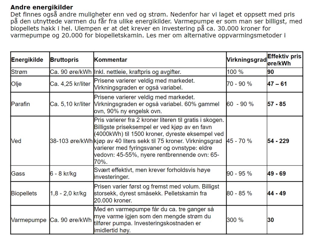 Peiskosen får bli foran TV’n i år. Nå er prisen for ved like dyr som prisen på strøm. Kanskje vi skulle fyre med diesel. Akkurat nå er det billigere å kjøre rundt med min dieselbil enn mange av de fine El-bilene. Strøm er dyrt, ved er dyrt, diesel er dyrt. Det er et enkelt og godt svar til det å spare energi. Kle deg i ull. Eller om du har du tilgang til skau er det billig med ved. Har du kun tilgang til bensinstasjon-ved er det dyrt. Bensinstasjoner er bra til mye, men ikke til ved, om det da ikke er Barlind-ved de selger. Barlind er den beste veden av alle. Barlind vokser seint og blir kompakt. Eldste Barlind i verden finner du forresten i Skottland. Der står det et som er mer enn 2000 år gammelt. Det brenner altså også sakte. Og det er altså med ved som det er med brennevin. Ulike typer gir ulik effekt. Hver art har sin egen brennverdi. Noe brenner seint og noe brenner fort. Betaler du f.eks masse mer for Bjørk enn for Furu er du lurt, ikke lur. Som varmegiver er Bjørka bare 10 % bedre. Prisen derimot er ofte mer en 10 % over furua. Bjørka ser bedre ut i vedkurven så det er vel utseende en betaler for. Akkurat som moteklær, biler og alt annet, du betaler for utseendet og ikke for nytten.