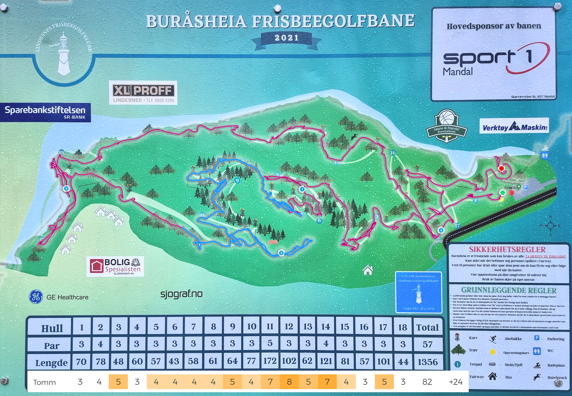 Buråsheia Frisbeegolfbane var turen verdt. Et flott stykke Mandal viste seg fram for oss. Fin og variert bane. Godt merket og fint vedlikeholdt. Tre av oss som liker å kaste disker dro til Mandal for å prøve denne banen vi ikke har kastet på før. Det er spennende å prøve nye ting. I alle fall noen ganger. Frisbeegolf er noe for alle. Vi møter unge gutter som kaster disken lengre på ett kast enn vi gjør på tre. De er flinke og prøver å dele av sin kunnskap om disker og teknikker. Lite vet de at slike opplysninger ikke fester seg hos oss. Enda vi skulle ønske det. Vi møter familier med små barn som kaster like langt som oss. Og til og med i den retningen de ønsker. Diskgolf er en sosial sport hvor de flinkeste og dårligste kan spille sammen. Og vi liker å være ute å gå tur uansett. Vi skravler og ler og kaster disker mot kurver. En av oss er flink. Det er ikke meg.