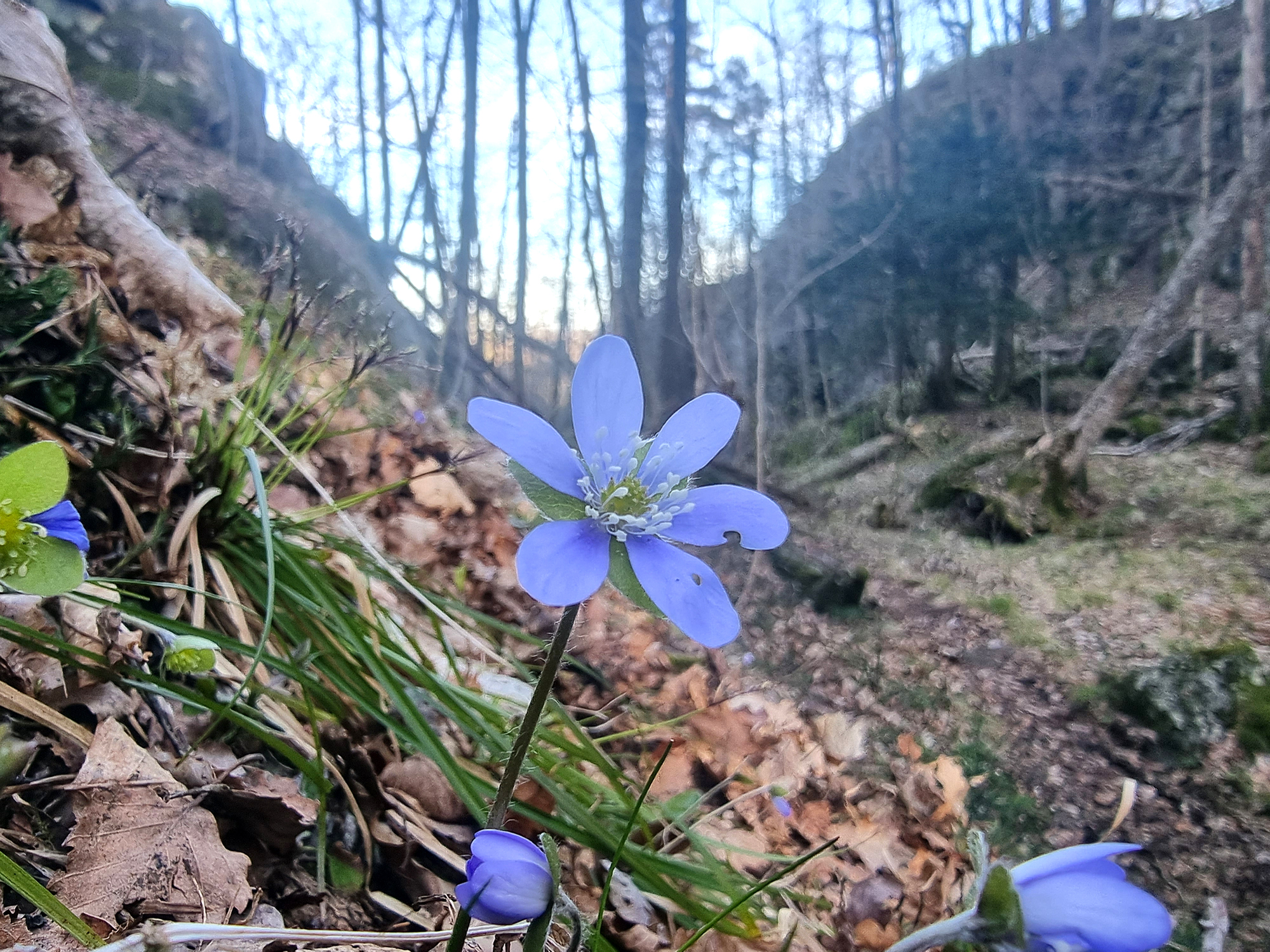 Vi gikk turen på en stille og skyfri dag. Blåveisene bugnet noen steder og andre steder stoppet aldri utsikten. Det er en fin tur. Og sammen med fine turkamerater ble turen aldri lang.