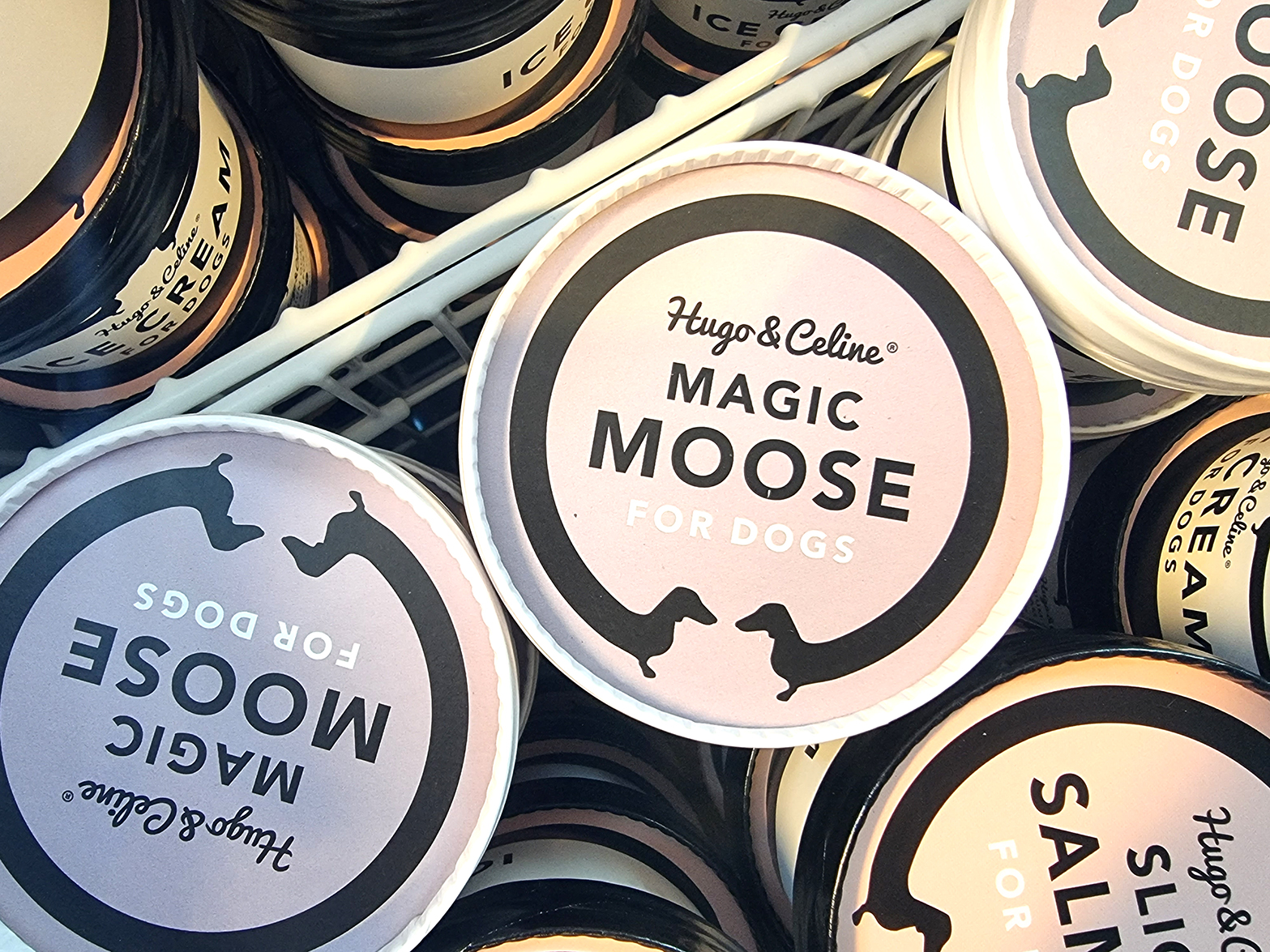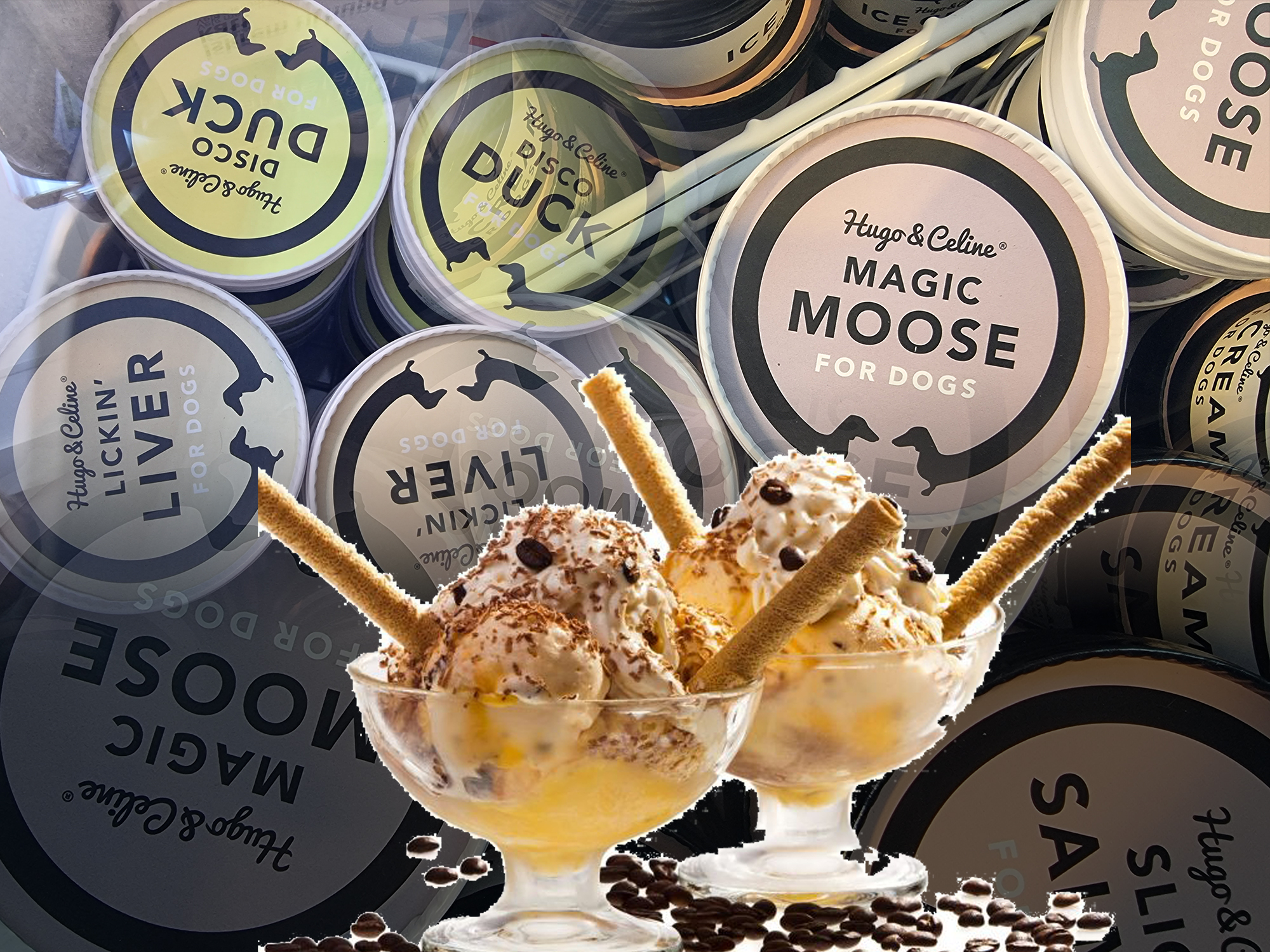 Alltid godt med dessert. Kremen av kremen. Is. Iskrem med smak av Lever. Iskrem med smak av elg. Iskrem i bokser fra Hugo & Celine. Vel, gjestene dine bør være gode venner. svært gode venner om du skal komme unna med denne type practical joke. Ideen kom da jeg ventet oppe hos dyrlegen. Katten var sjuk. Like overfor meg stod det en liten frysedisk med iskrem. “Det hadde vært godt med en venteis mens jeg venter”, tenkte jeg. Men den tanken holdt bare helt til jeg så ned i disken. Isboksene var fine og ved første øyekast fristende. Men så leste jeg. Disco Duck, Lickin Liver, Magic Moose. Is med smaken av and, lever eller elg. “Hmm, hvordan blir det med litt sjokoladesaus, et par mynteblad til pynt og litt jordbærstrøssel?”