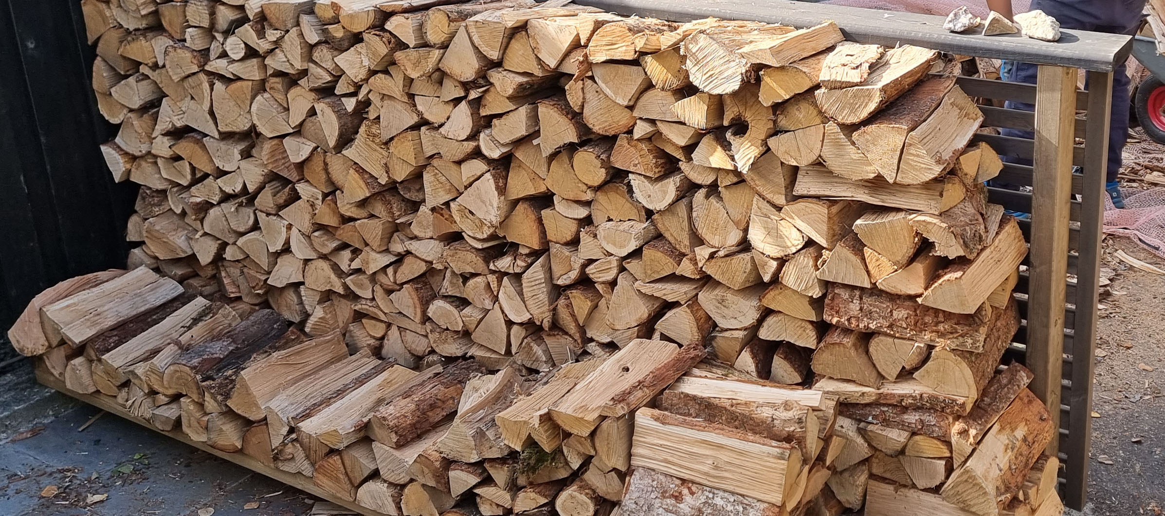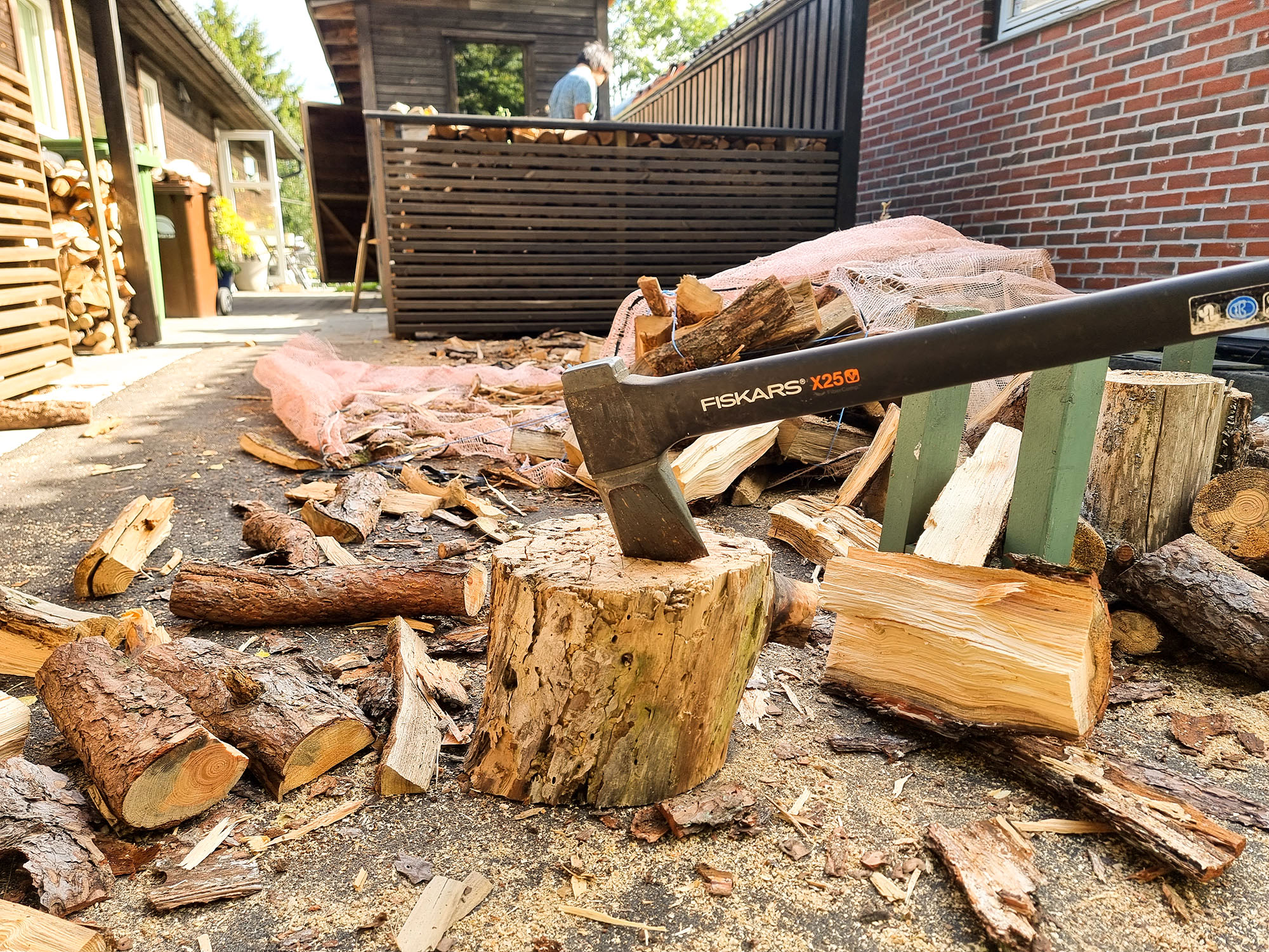 Bitene er nå kløyvd i brennbare enheter og stablet fint på plass av Lucas.