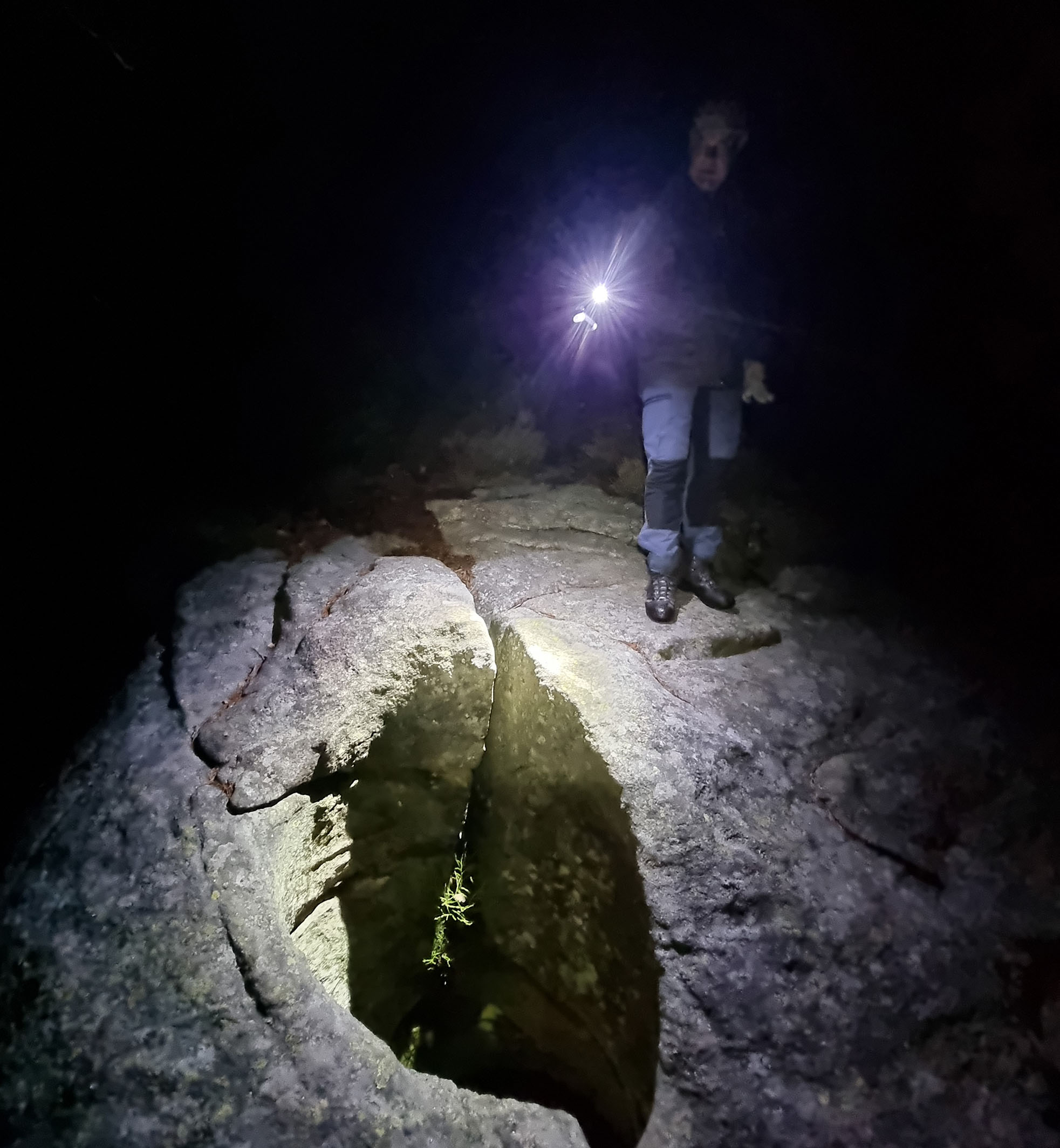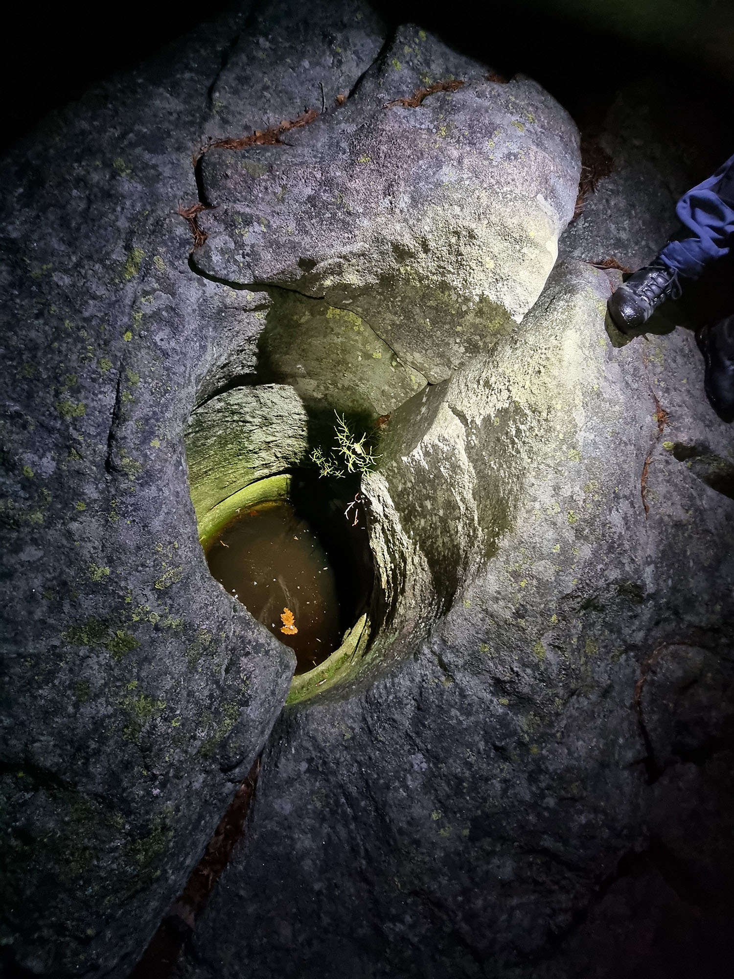 Jettegryta ved den Omvendte Båt var et hyggelig syn. Selv i stummende mørke. Jeg har visst at det var en Jettegryte her oppe et sted og gått like forbi den mange ganger men ikke sett den før i går kveld.