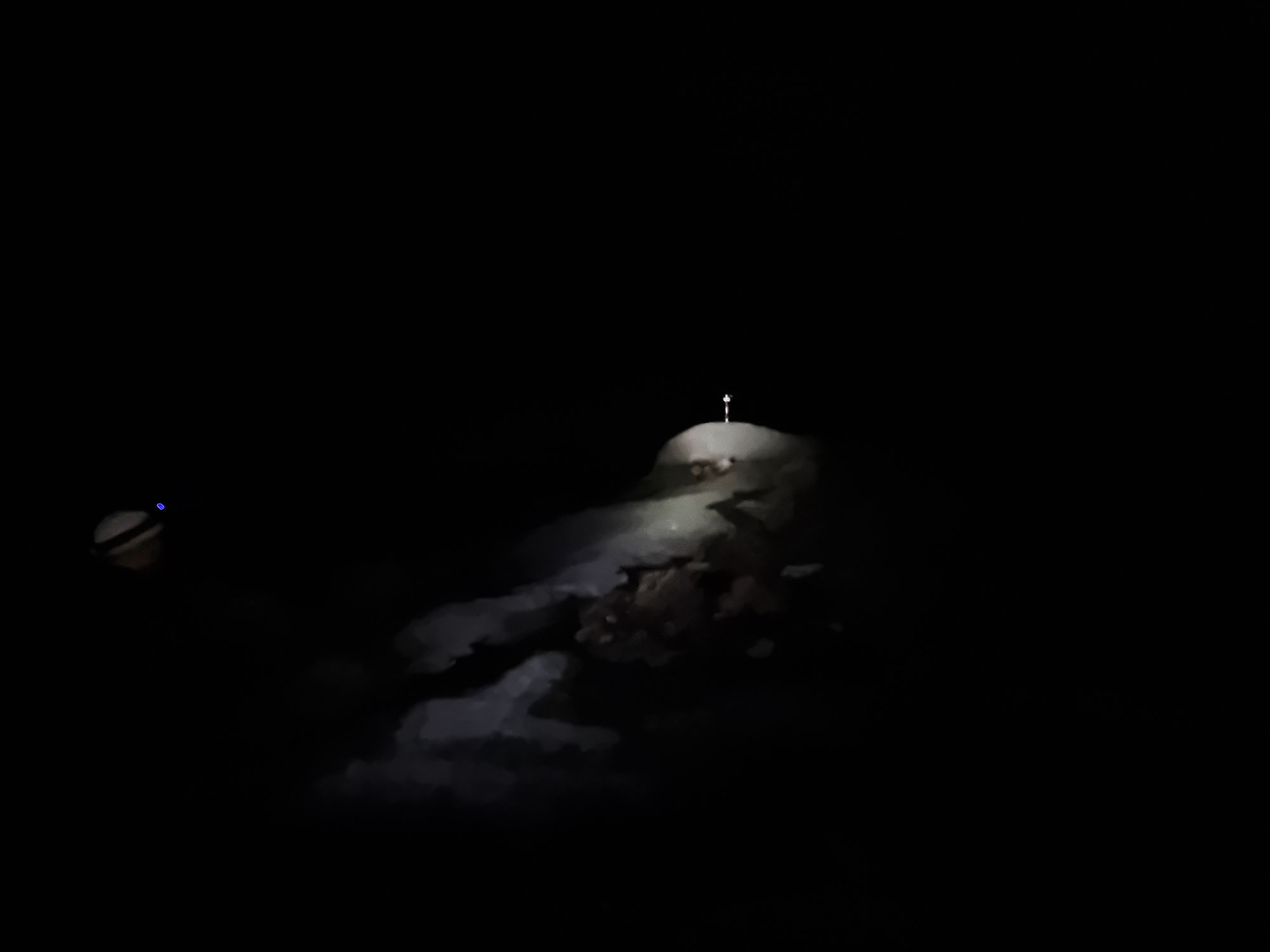 Da turen startet var det allerede mørkt. Heldigvis ikke i hodet. Det er umulig med Øystein som lavterskel turkamerat. Han har tråkket de fleste stier i Kristiansand og kunnskapsrik så det holder. Det var smått om folk på tur denne kvelden. Kanskje ikke så rart. Det er jo godt for oss introverte folkesky mørkemenn at ikke alle har hodelyktfetisj på CVn. Turen gikk over Kalkheia og Reddalsheia før vi svingte inn på den ytre stien opp mot Den Omvendte Båt.