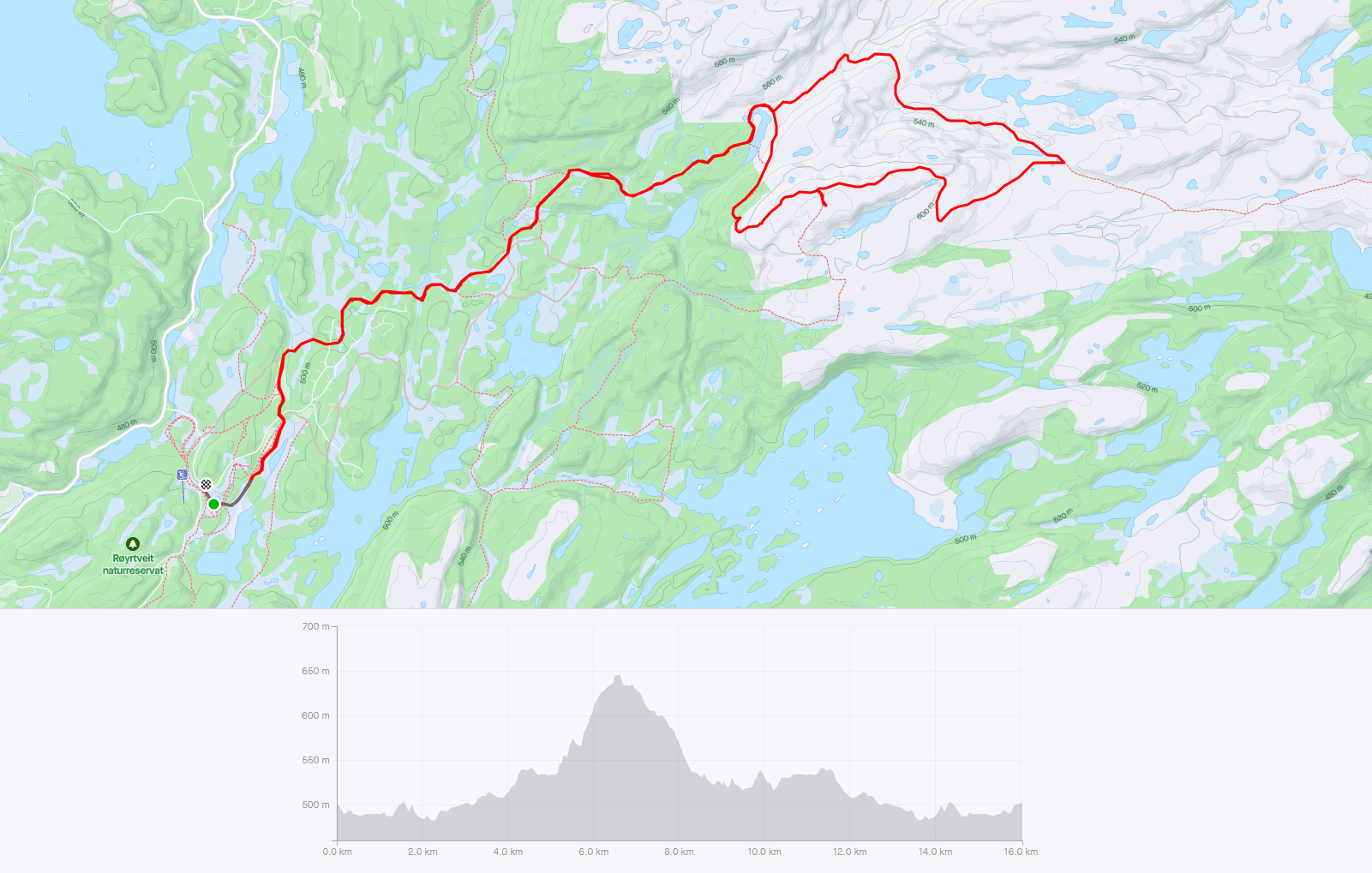 Heldigvis fortalte en hyggelig dame der oppe oss at vi burde ta den lengste løypa hjemover. Den var ikke så stupbratt og de første 2-3 km kan du nesten bare renne.