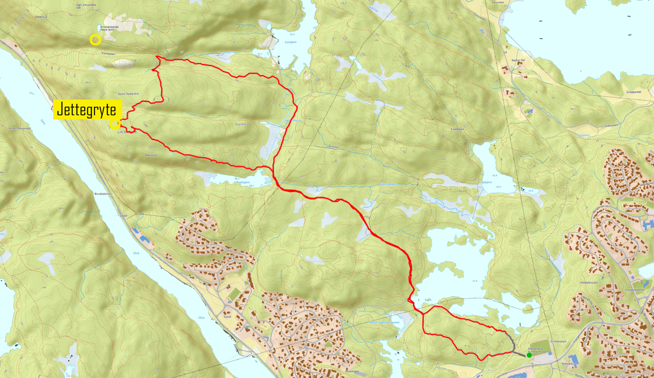 Og går du litt lenger opp mot Oddersjå kan du finne en til. Liten gul ring på kartet.