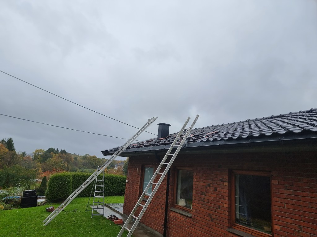 Hvor mye skal det blåse før 20-30 takstein velger å løfte seg opp fra sitt leie. Et par av dem ble slengt over 2 meter bortover og oppover taket. Babet avleverer heftig og begeistret vind. Jeg synes vær er gøy og liker å kjenne på det, men er glad jeg ikke var utenfor når den vindkula kom. Det er heldigvis veldig lenge mellom hver gang det blåser slik. Det blåste faktisk så mye at de på Liste ikke kunne høre hva den andre sa. Og da blåser det mye.