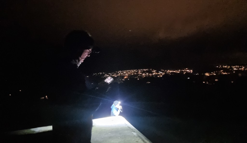 Flekkerøya fasinerer og forskrekker. I gamle dager kunne du risikere å bli kristen om du tok ferja ut til øya. Slik er det ikke lenger. Tunnellen slapp inn både dett og hint når den åpnet i 1989. i går kveld slapp den gjenom oss, lavterskelkveldsturklubben. I går gikk vi et sted der ingen nokon gong skulle tru at nokon kunne gå. Det gjaldt i alle fall for meg. Vi gikk på et sted hvor jeg aldri har vært før. Lindebø, Laksevika, Skålevik. Nye navn for meg. Det var mørke skygger som hang over oss der vi gikk selv om det var natt. En gang var stedet her fylt opp av tyskere med betongfetish og frykt. Det var bunkere over alt. Fra en tid da et land ville ta et annet land. Triste tanker den gang, og triste tanker på det som skjer andre steder i verden i dag. Rommene og kanonstillingene og gangene vitner om en unødvendig krig. Om forstyrrede menn med stort ego og liten selvinnsikt. Det er fascinerende å se hvor mye det gikk an å lage de få årene tyskerne okkuperte oss.
