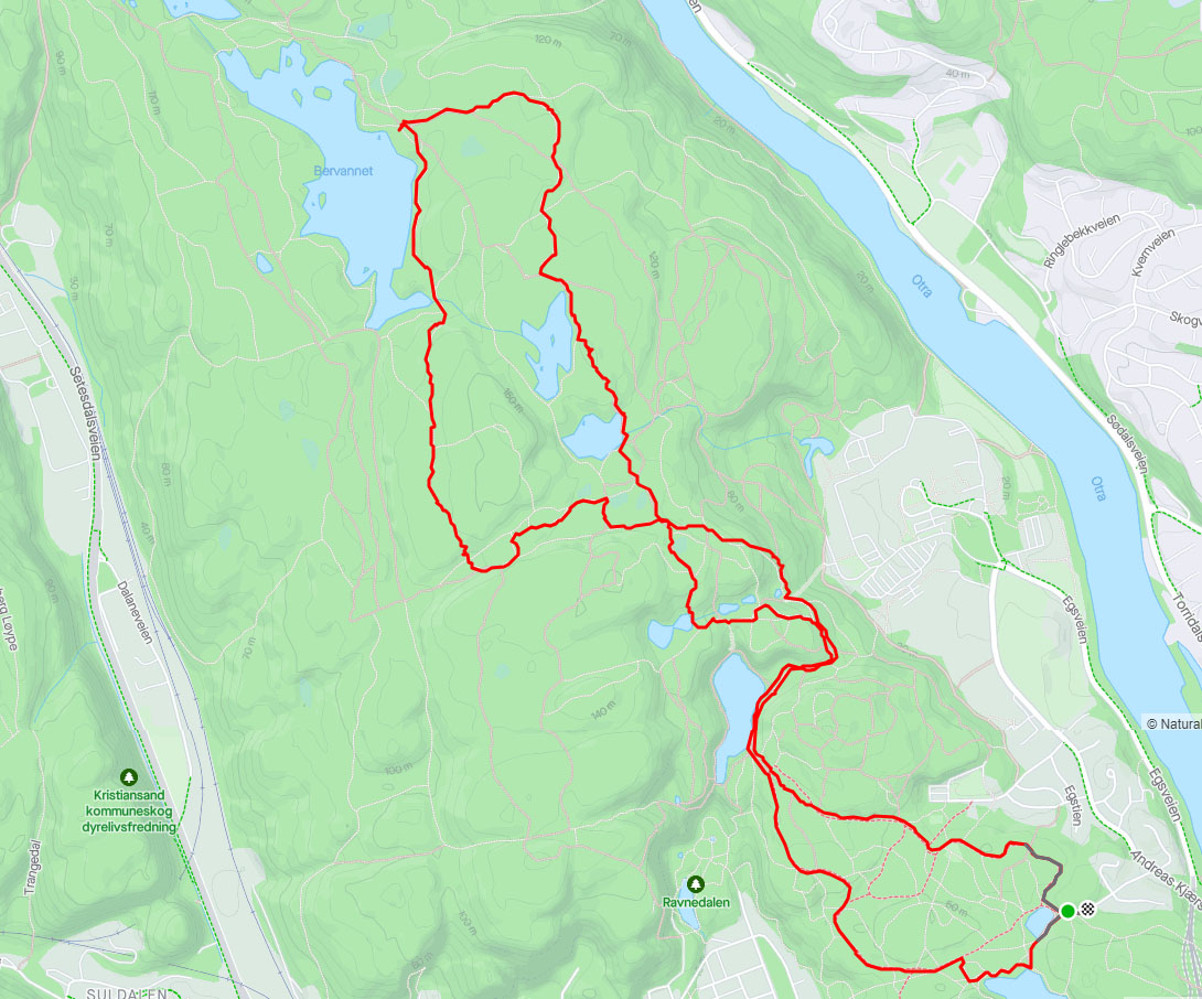10 cm melisdryss over Bymarka i Kristiansand. Det er fint om dagen i lyset. Ennå finere i mørket. Vi gikk inn i Eventyret fra Svarttjønn i Baneheia. Eller kanskje det var forordet vi gikk inn i. For vi fulgte lysløypa bort til Bånetjønn. Det var først når vi kun hadde eget lys at magien startet. Det var blikk stille med kun ett bitte lite dryss av lett dalende snøkrystaller. Bakken var myk av snø og vi hørte kald nysnø knirke under skoene. Trær og busker og lyng og steiner var pynta i sin fineste hvite stas. Vakkert. Og snødekket demper alle lyder og det virker som vi går i en liten hvit boble innover i skogen. Vi gikk nesten 8 km denne kvelden. Føret var fint. Lite is under snøen. Av og til skulle vi hatt teknikken til Warholm for det var en del nedfallstrær som skapte hinder i løypa.
