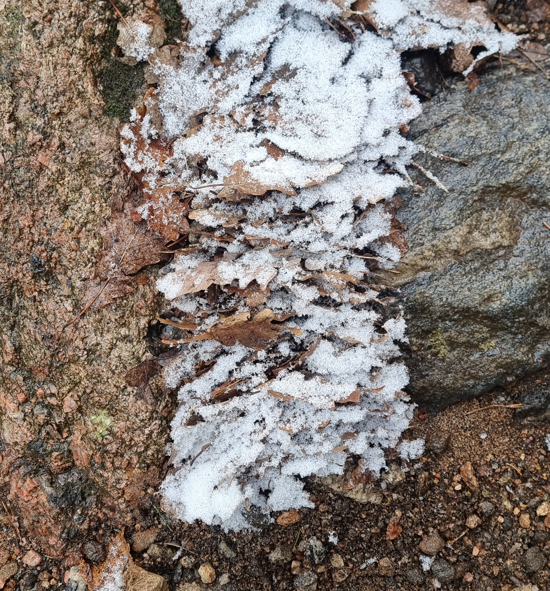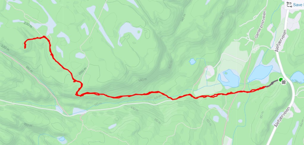 Vi studerte stabler av eikeblad som lå i stien på vei opp og lurte på hvem som hadde lagt dem der. Vi stoppet og så på bjørkehælen og lurte på hvor den var på vei. Vi stoppet ved bekkedusjen sånn ca halvveis opp og drakk av det friske vannet. “Det smaker som Nord-Norge”, sa hun. Oldeforeldre bor der i nord. Vi reddet noen rogn som var nær ved å bli kvelt av slyngplanter.