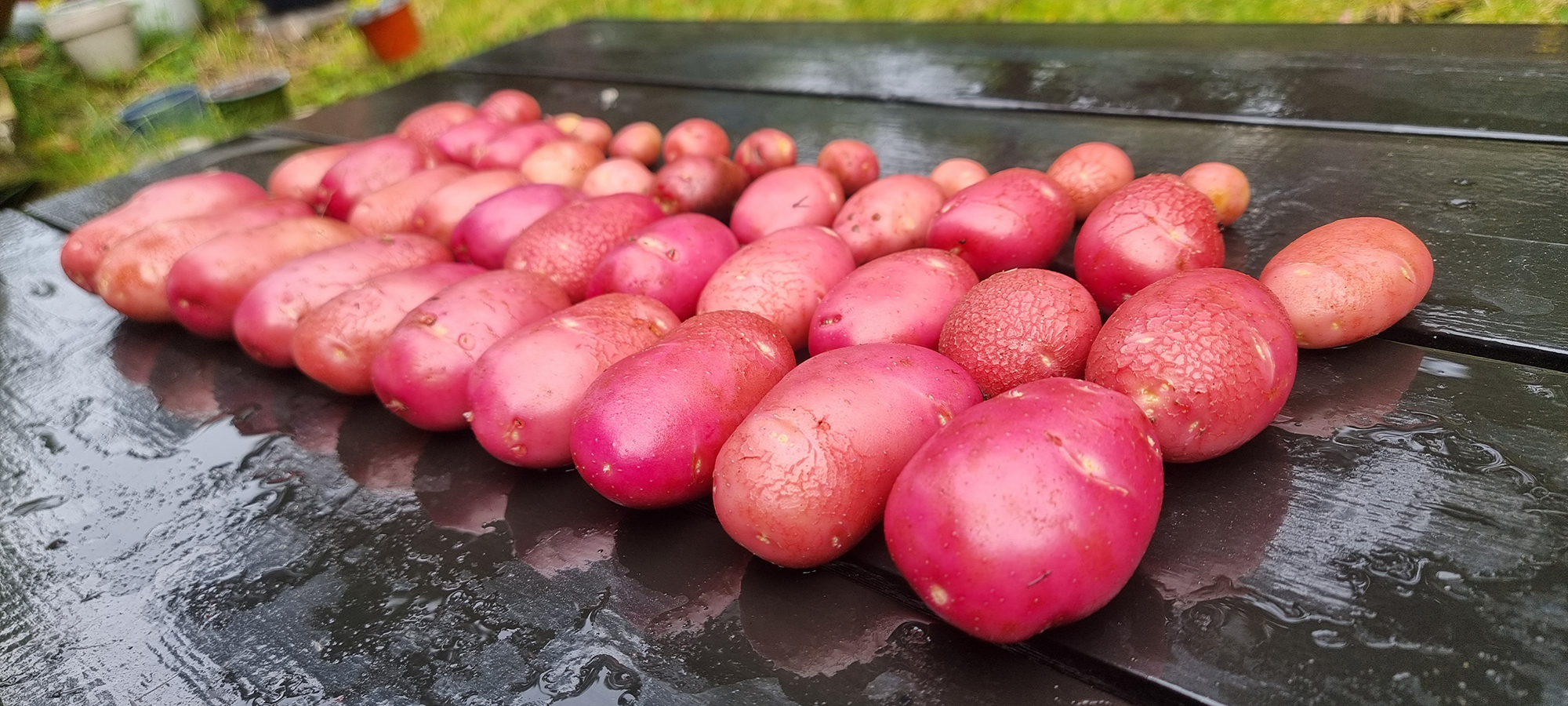 Rent bortsett fra dette potetvissvasset har vi høstet inn hva vi plantet. 5 poteter i ei stor murebøtte ble til 3 kilo Asterix godpoteter. Og inne blant alle dem jeg tok opp fant jeg meg selv.