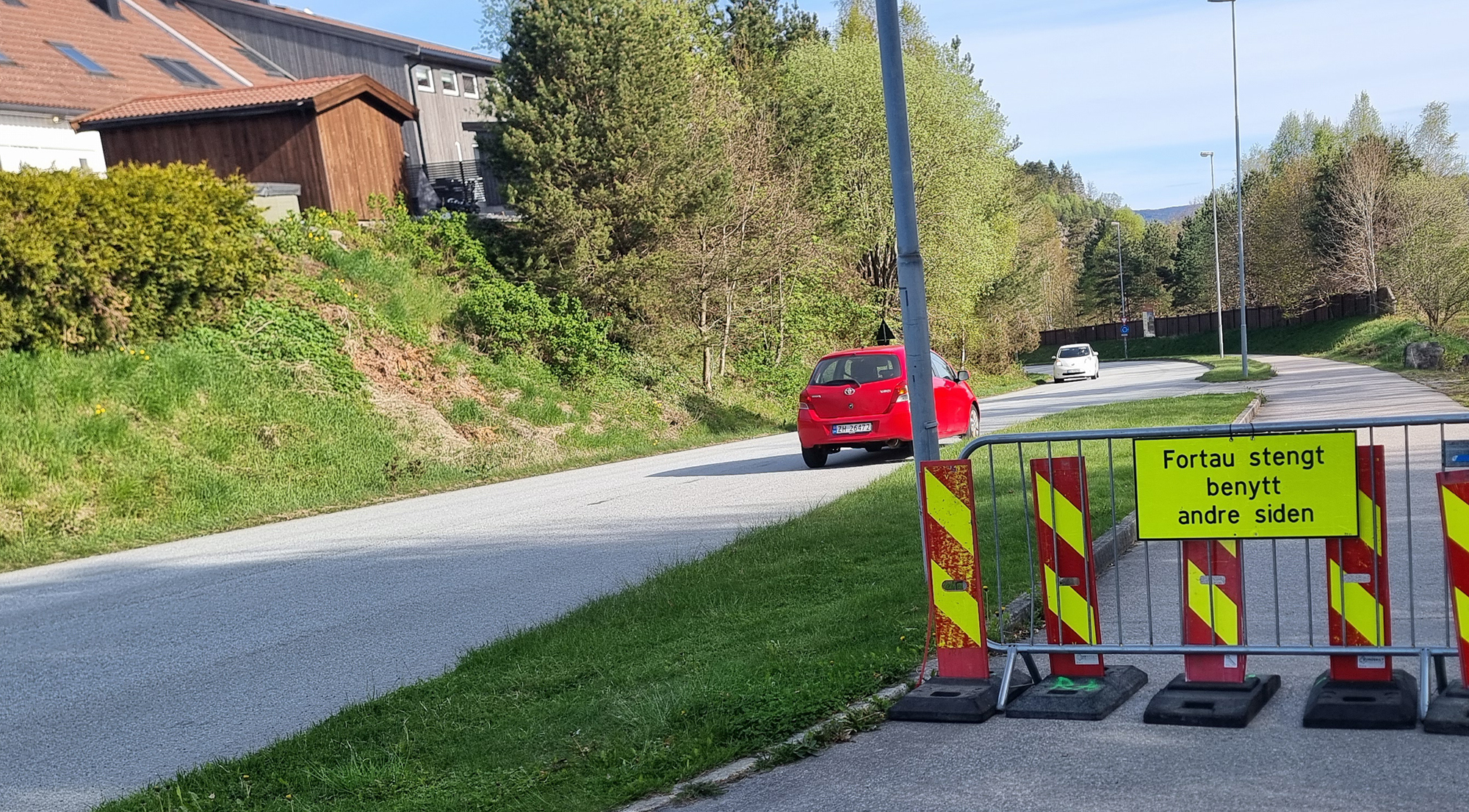 I de spirituelles rekker og blant kvantefysikere snakkes det mye om å gå over til den andre siden. Og jeg mistenker Statens Vegvesen å forfølge disse tankene. At vi som fotgjengere skal gå over til den andre siden kun for å gå over til den andres siden,- for alltid. Det graves nede i veien her så de har stengt sykkelstien og oppfordrer oss dødelig til å bruke den andre siden. Der hvor det verken er fortau, sykkelsti eller hvit stripe i veikanten. Men det er kanskje derfor de graver lenger nede for å gravlegge alle de som følger oppfordringen og krysser veien. Og gravlegger de mange nok så trenger de jo heller ikke å lage fortau, for det er ingen igjen til å gå på dem.