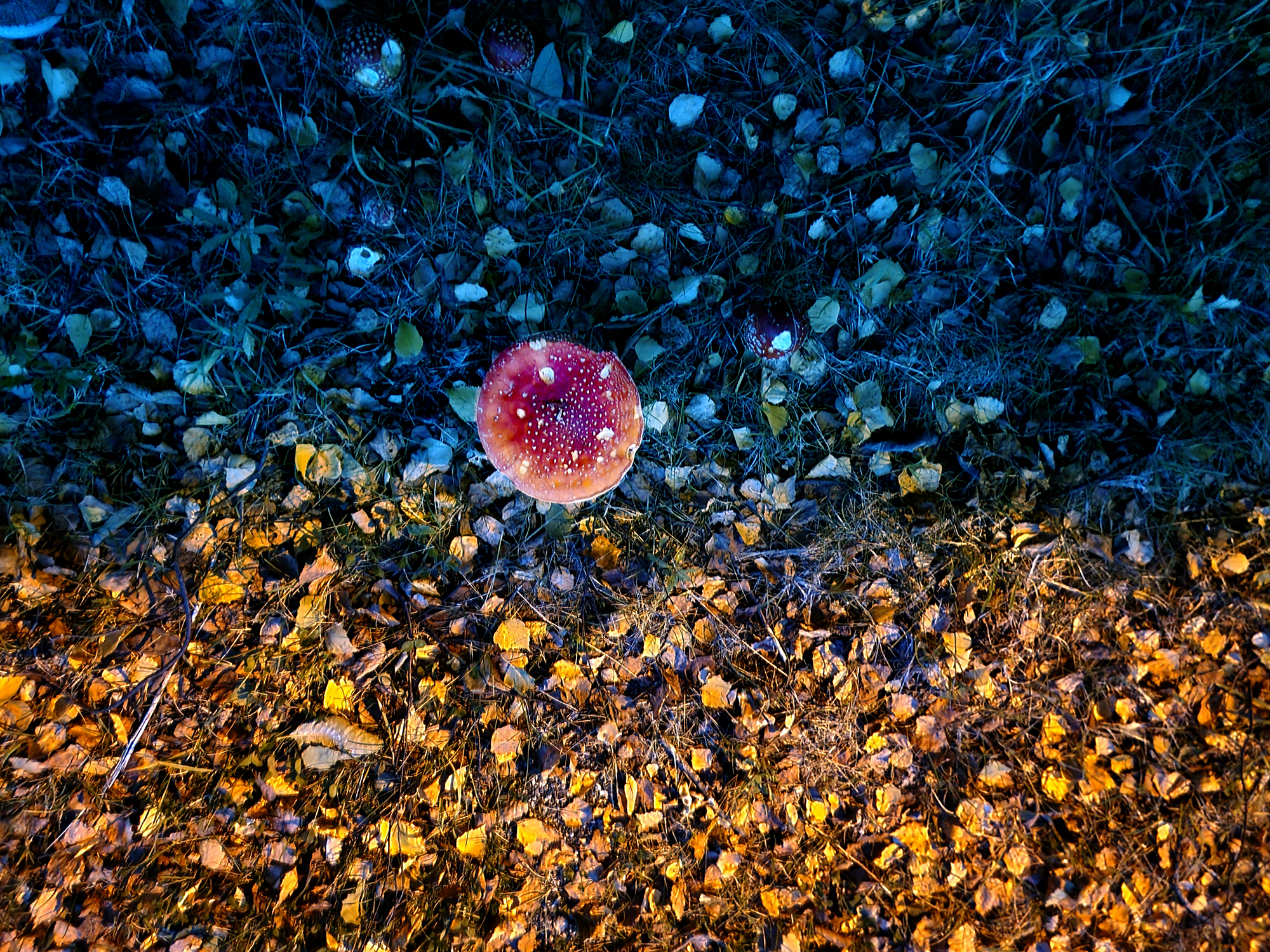 Et land jeg ikke visste noen ting om før Russland invaderte. Nå vet jeg mer. Jeg kom hjem en kveld og så denne soppen i veikanten. Akkurat i skjæret mellom lys og mørke. Det lyse gule løvet mot de mørke skyggene. Og en giftig sopp i midten. Jeg tenkte på det ukrainske flagget. Blått og gult. Men nå har de en giftig sopp i midten. Putin. Jeg forsøker å se og lære mer om denne konflikten. Dette overgrepet fra store Russland. Jeg blir trist når jeg tenker på all den frykten eliten i Russland sprer. Dødsfrykt i Ukraina. Direkte berørt av dødbringende våpen. Soldater på hver side hvor ingen av dem har lyst til å dø. Sivile som ser tanks kjøre forbi utenfor kjøkkenvinduet. Tilfeldige som havner i skuddlinjen. Unge soldater som har sett så mye død og pinsel at de mister seg selv.