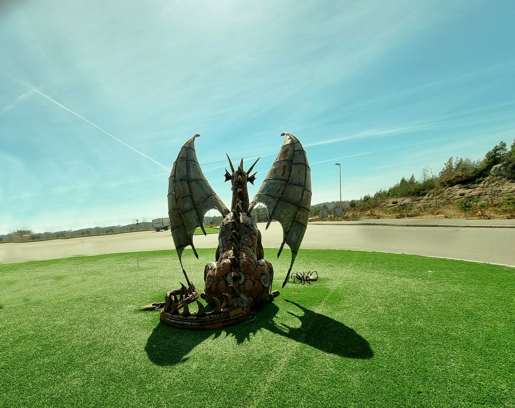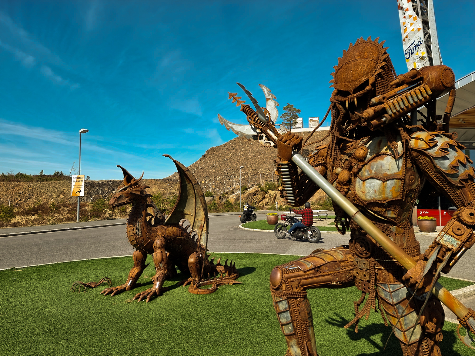 Men vi måtte bryte opp. Parkeringa gikk ut om 45 minutter. Langs fargerike former og malerier som satte smil på tilskuerne. Videre kom vi til Draumkvedet, et 50 meter langt broderi som forteller om han fyren som sov i 13 døgn og som drømte om himmelen og helvete og fortalte om det til presten sin. Fasinerende å dedikert en kunstner kan bli. Ufattelig arbeid lagt ned i det kunstverket.