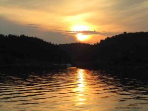 Skulle ønske jeg kunne fly. Skulle ønske jeg var vektløs. Tenk å sveve sammen med skyene. Sirkle en regnbue. Forfølge en høststorm. Suse på rygg under en stjernehimmel. Åh. For en alternativ virkelighet. En fin tanke. Her en kveld fulgte jeg en fantastisk solnedgang helt til den forsvant i vest (retning Feda). Jeg tok mange bilder. Ett av dem fikk en helt ny dimensjon når jeg helte bildene ut av kameraet og inn i PCn. Jeg satt og nøt bildene. Usannsynlig, men virkelig og vakker komposisjon fra naturen. Lag på lag med skyer som varsomt bryter og