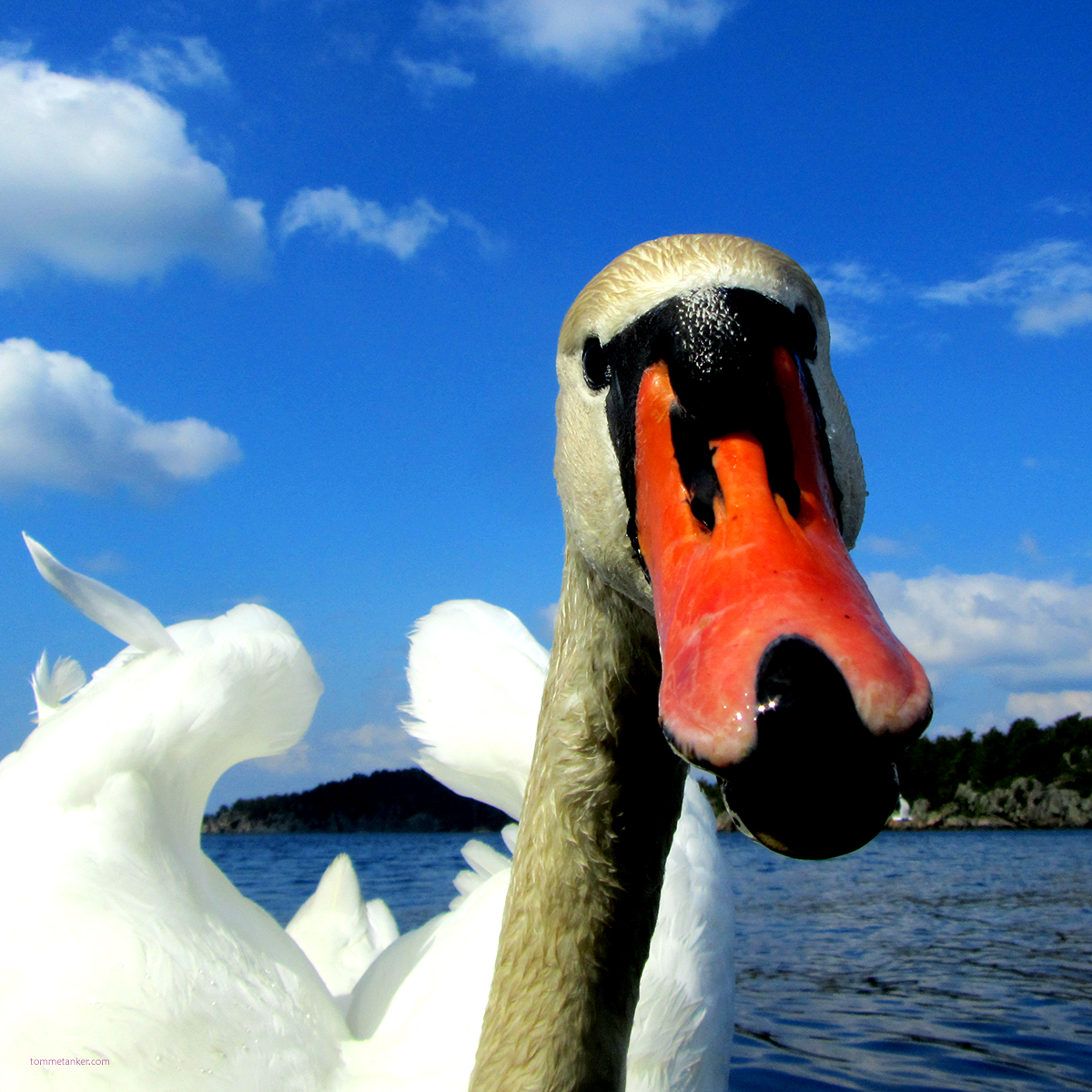 Naturen tyter ut nye skapninger om dagen. Alle fuglene kommer og viser frem sine nyansatte familiemedlemmer. Små rakkerunger og englebarn som ennå en stund skal holde fuglemødre og fedre fastlåst i tidsklemma. Og mens biller og makker klamrer seg til et skrint jordsmonn i håp om ikke å ende opp som fuglebæsj på bilen min så kommer svanemor seilende inn bukta som et spørsmålstegn. Hva? Jeg trodde han brukte prevensjon? Jeg er kanskje jomfru svane Maria? Den er ikke min? Nei, vet du hva! Det er en forvokst gråspurv? Hun fortviler og ber om en skalk, men jeg kan se hun er stolt. Hun vil bare at partylivet ikke skal være forbi. Hun er blitt voksen med barn. Og da kommer en smukkas seilende også. Typen hennes. Han ser hyggelig ut og vi hilser. Nye venner for sommeren.