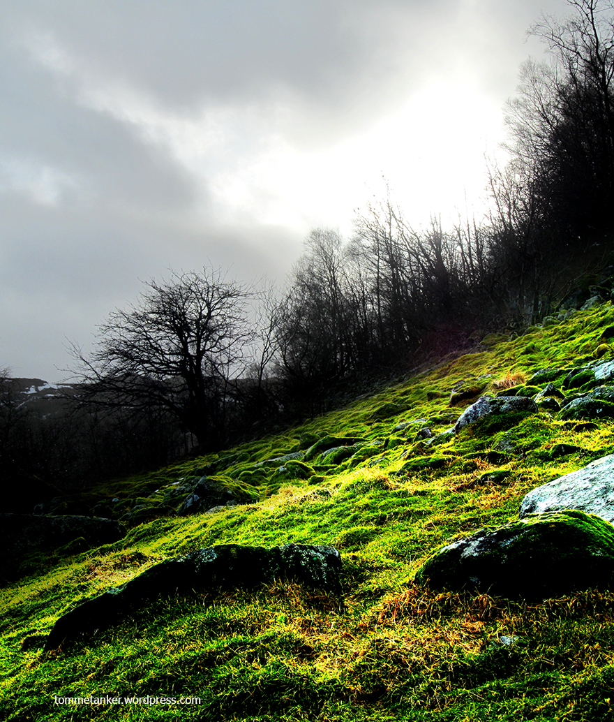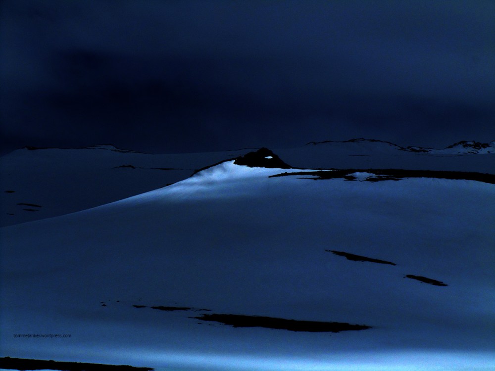 Gudd å fint. En liten kolle stikker lengselsfult opp av snøen. Vinteren er på hell og kollen gleder seg til solvarme i fjellet og ny mose og lav som klamrer seg fast og frister forbipasserende reinsdyr. Det var på en skitur 4.mai med tunge skyer og uvær i det fjerne den dukket opp foran meg. Skyene slapp solen gjennom og et lysfelt føk over viddene og stanset opp på kollen. Den har ikke noe navn som jeg vet om, men i mitt hode er det Solkollen ved Tjørnbrottsbu.