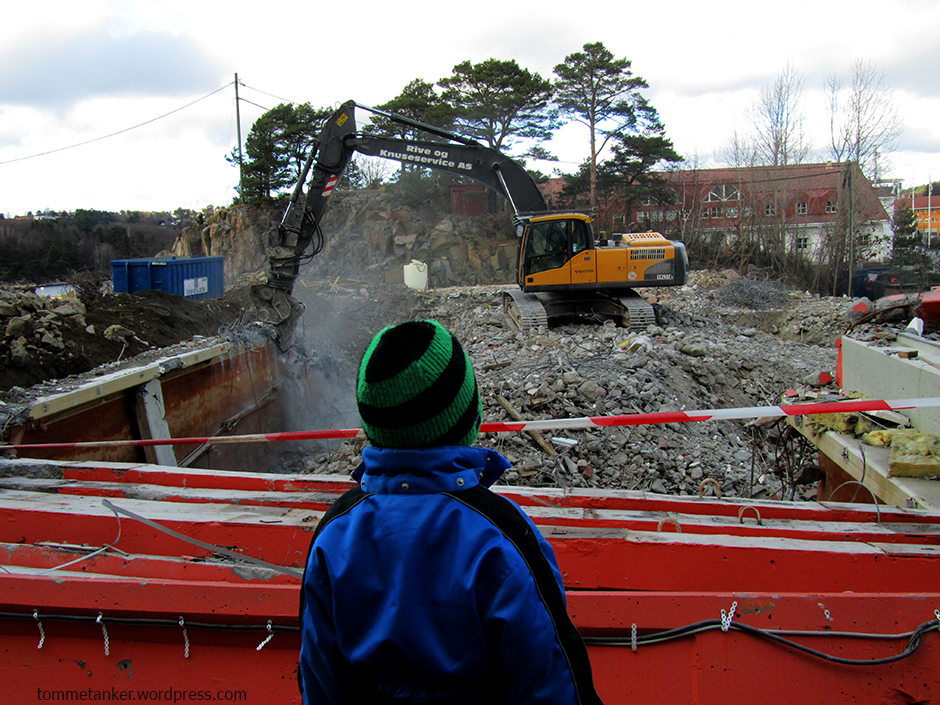 Vi står der side om side. Han eksaltert av lyd, støv, digerhet og høy demolition faktor. Jeg og.