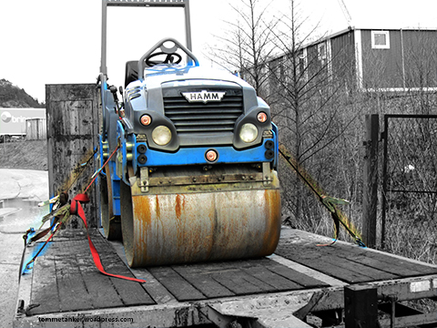 Disse store uformelige og bråkete maskinene fulle av hestekrefter, hydraulikk og avansert elektronikk. Nei takk. Ikke for meg nei. Neppe! Aldri! Fysjom! Men hva gjør man vel ikke for sitt barnebarn. Små gutter lar seg så lett imponere av store maskiner, og av og til må de få lov til det. De vet ikke bedre. Så jeg tusler motvillig med til det som en gang var Korskvik Renseanlegg.