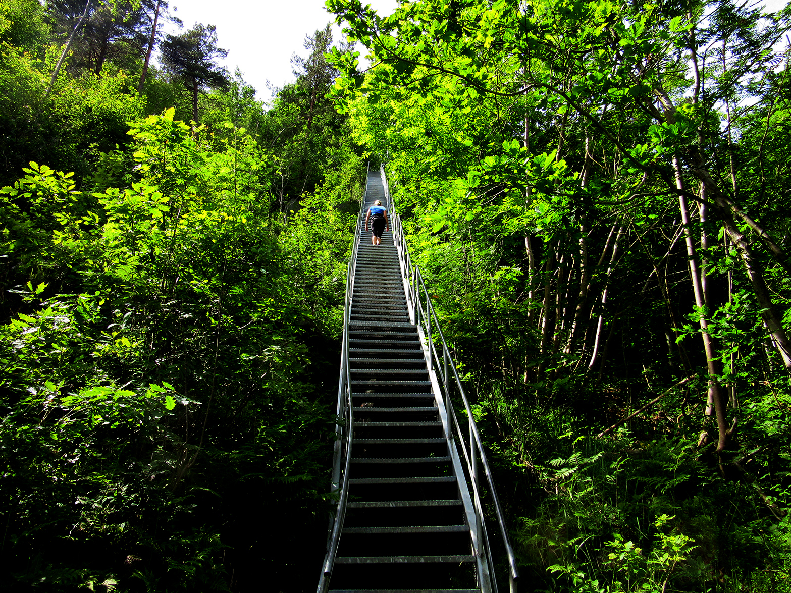 Eller; 249 trinn til en fastere rumpe. Trinn for trinn, steg for steg. Opp, opp, opp. Ryktet var sant og det har gått foran meg. Det finnes et sted hvor rumper blir til. Ikke fort og ikke lett men de formes her. Rumpesmie. Min rumpe er fin og perfekt og fast så det var av ren nysgjerrighet jeg hev meg i bilen. Jeg tok turen til denne fantastiske innretningen i Vågsbygdskogen. Dette treningsapparatet overgår alt du får på TV-shop. Det utklasser til og med alt de har på alle Fitness-sentre noen gang bygd i vårt langstrakte land. Innretningen har det korte navnet; Trapp. Og typen er av den lange og bratte sorten. Og det stemte det jeg hadde hørt.