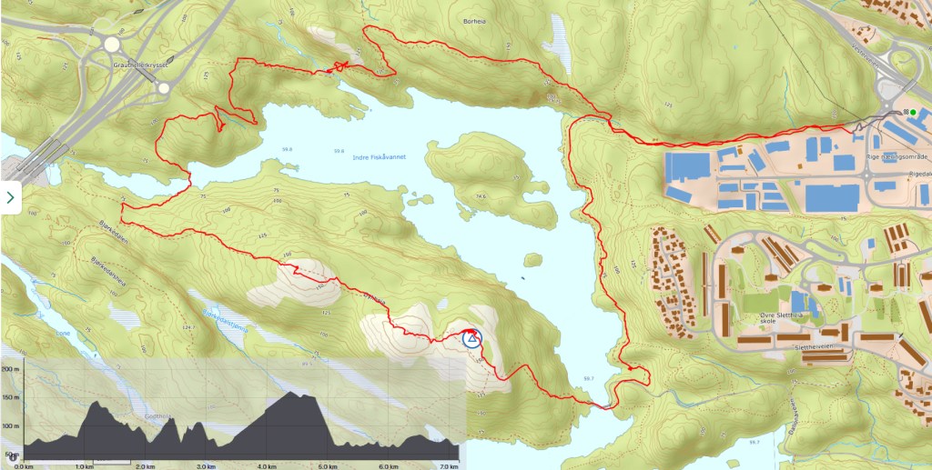 “Vi starter fra Biltilsynet” sa han. Og slik ble det. Og starter du der og går opp til Fiskåvann kan du enten ta til venstre eller høyre.