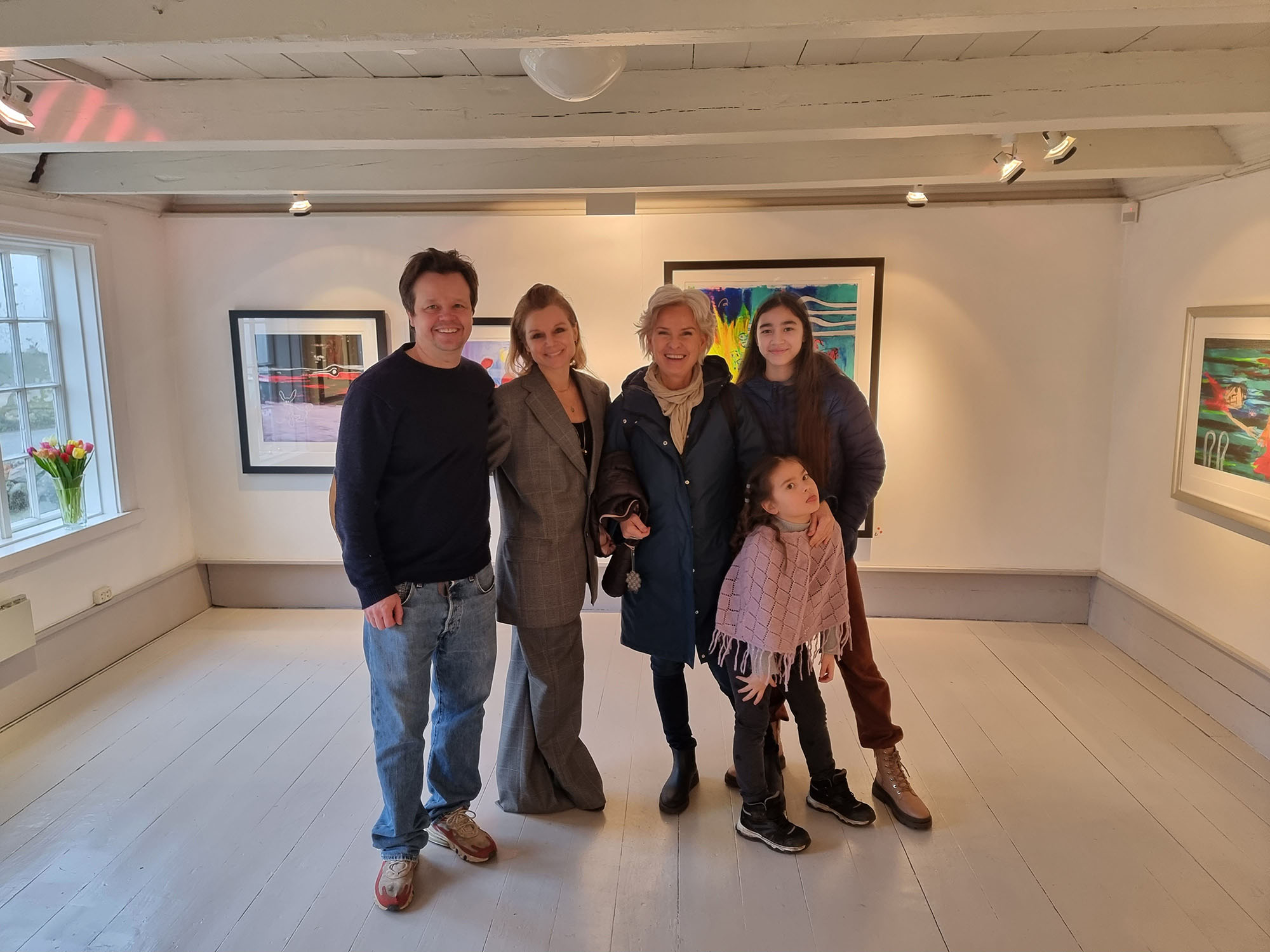 “Javel da!”” Ari Ben?” Ari Ben Reddik Fy Fasan, tenkte jeg. Det var en regntung dag da kona foreslo å kjøre til Grimstad og se på en utstilling av Ari Ben sin kunst. “Javelda”. Jeg dro meg selv ut døra etter nesebora. Med oss i bilen fikk vi de to kunstneriske barnebarna Bella og Mina. På veien bort fortalte vi om Prinsessen og kunstneren og mørket som av og til kommer i livet. Vel borte fant vi det fine gule huset hvor Grimstad Kunstforening holder til. I småregn løp vi inn. Der møtte vi vegger fylt med fargerike trykk av Ari Ben. Og der møtte vi bror og søster til Ari; Anja og Espen. De ønsket velkommen og var de perfekte verter. De fortalt bakgrunnen for mange av bildene. Fra fine blomsterbilder til malerier av vonde drømmer. Det var en mangfoldig utstilling og inntrykkene seeeeeeg inn i skrotten fra bilde etter bilde. Også Bella tok inn bildene. Vi snakket om dem og vurderte hva vi så. Det var fint. Og Anja og Espen delte med oss mange ting. Vi fant mange felles knagger i våre liv. Det er moro å treffe mennesker som gir av seg selv. Som oppriktig ønsker å fortelle om ting de liker og ting de brenner for. Nesten som vi har møtt hverandre før. Underlig og fint.